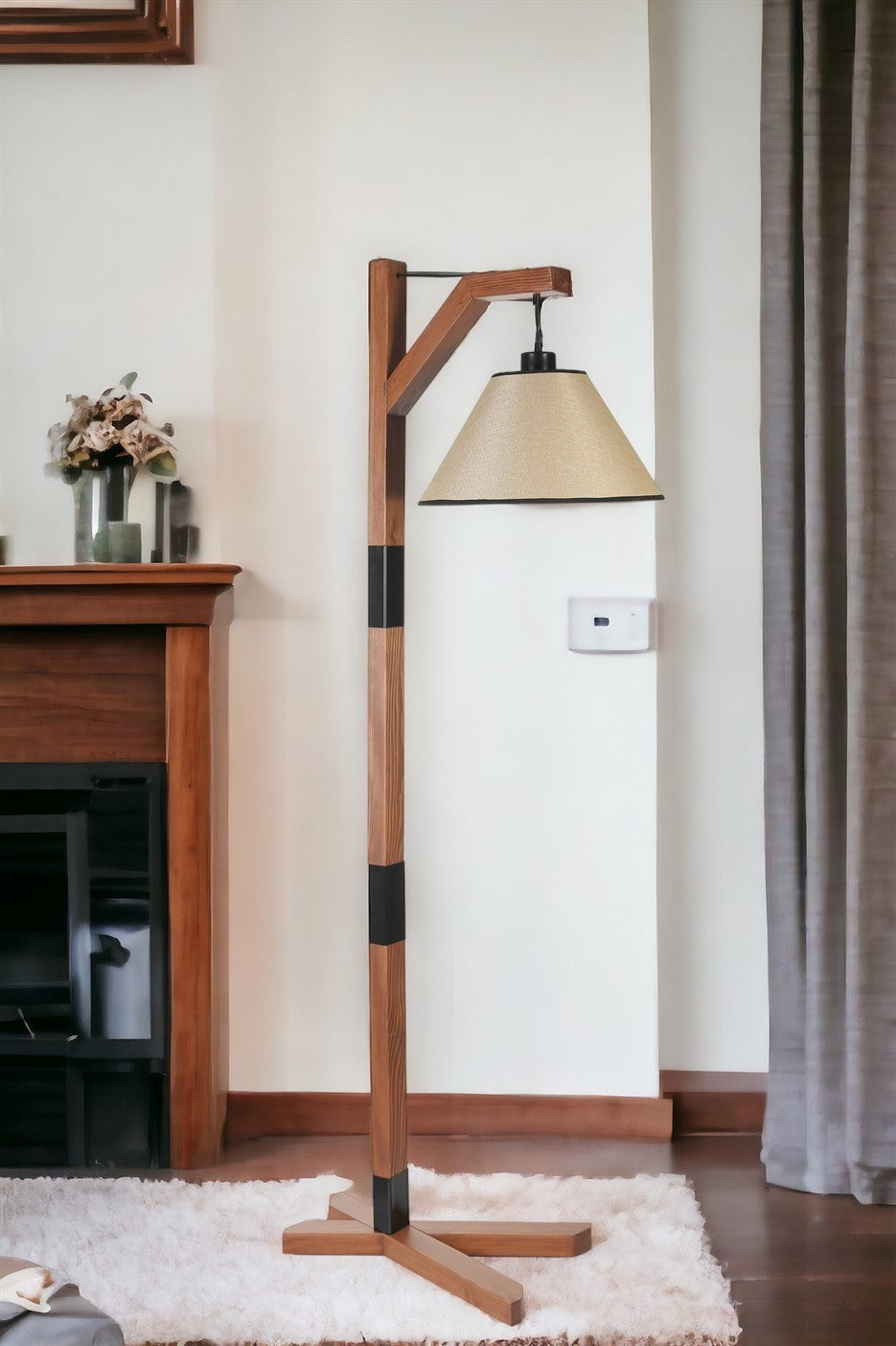 Candeeiro de Pé – 175 cm – Nogueira e Bege – Metal