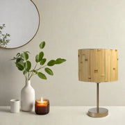 Ilumine seu espaço com a mistura perfeita de elegância e funcionalidade com nossa Lâmpada de Mesa com Corpo de Metal. O corpo de metal elegante combinado com uma tampa de bambu cria um contraste impressionante que elevará instantaneamente qualquer ambiente em sua casa.