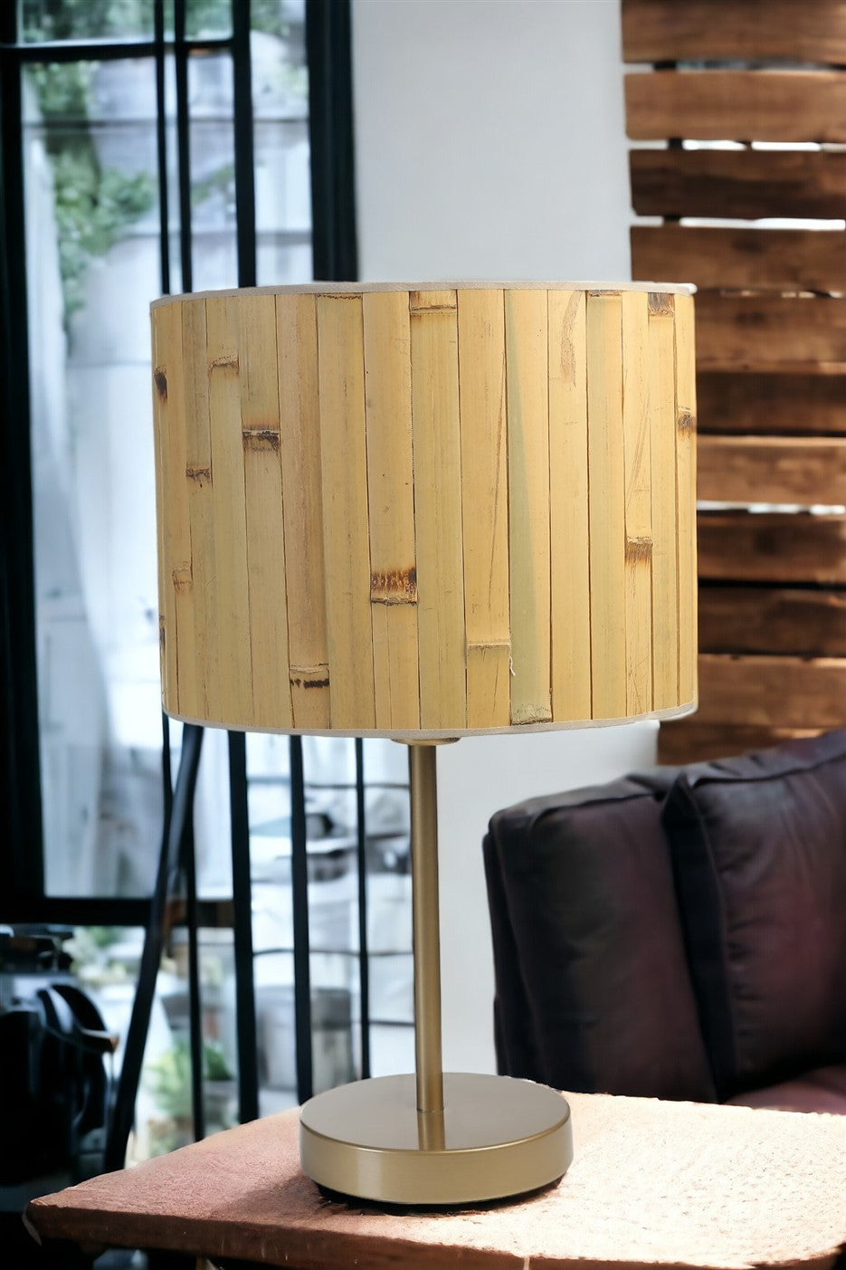 Candeeiro de Mesa - 45 cm - Carvalho e Ouro - Metal e Bambu