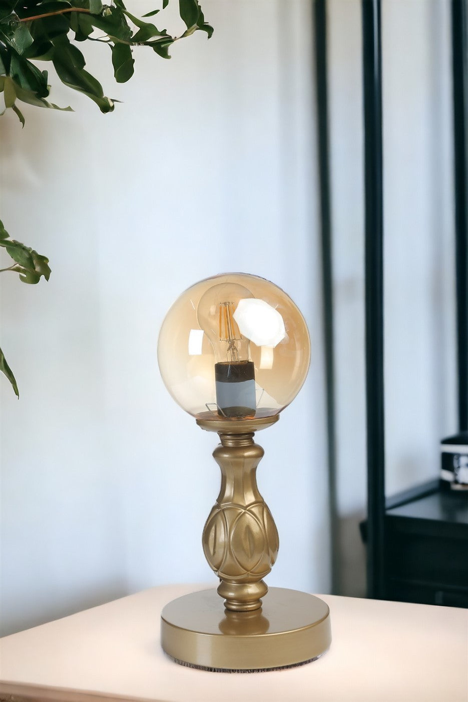 Candeeiro de mesa – 35 cm – Âmbar e Dourado – Metal e vidro