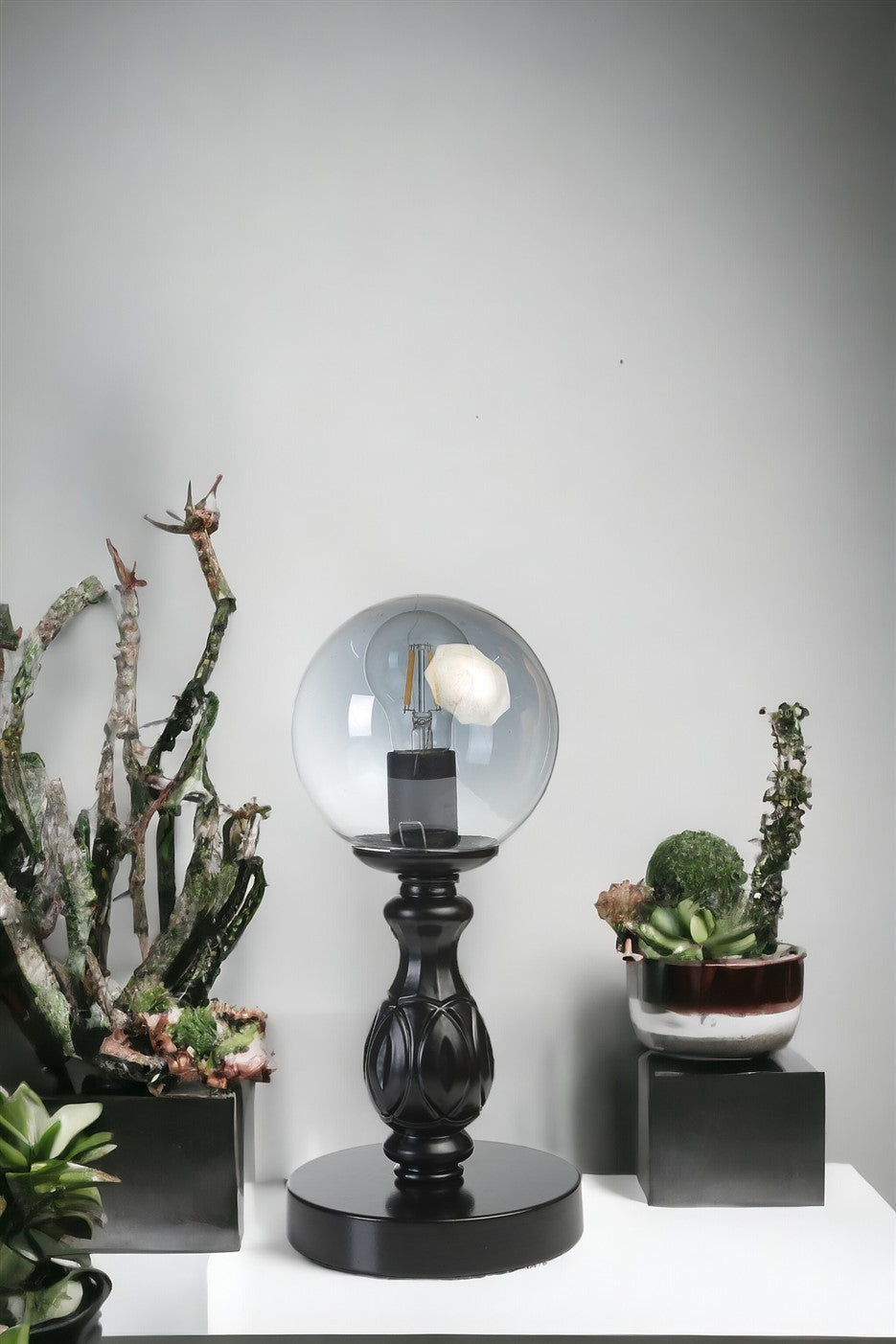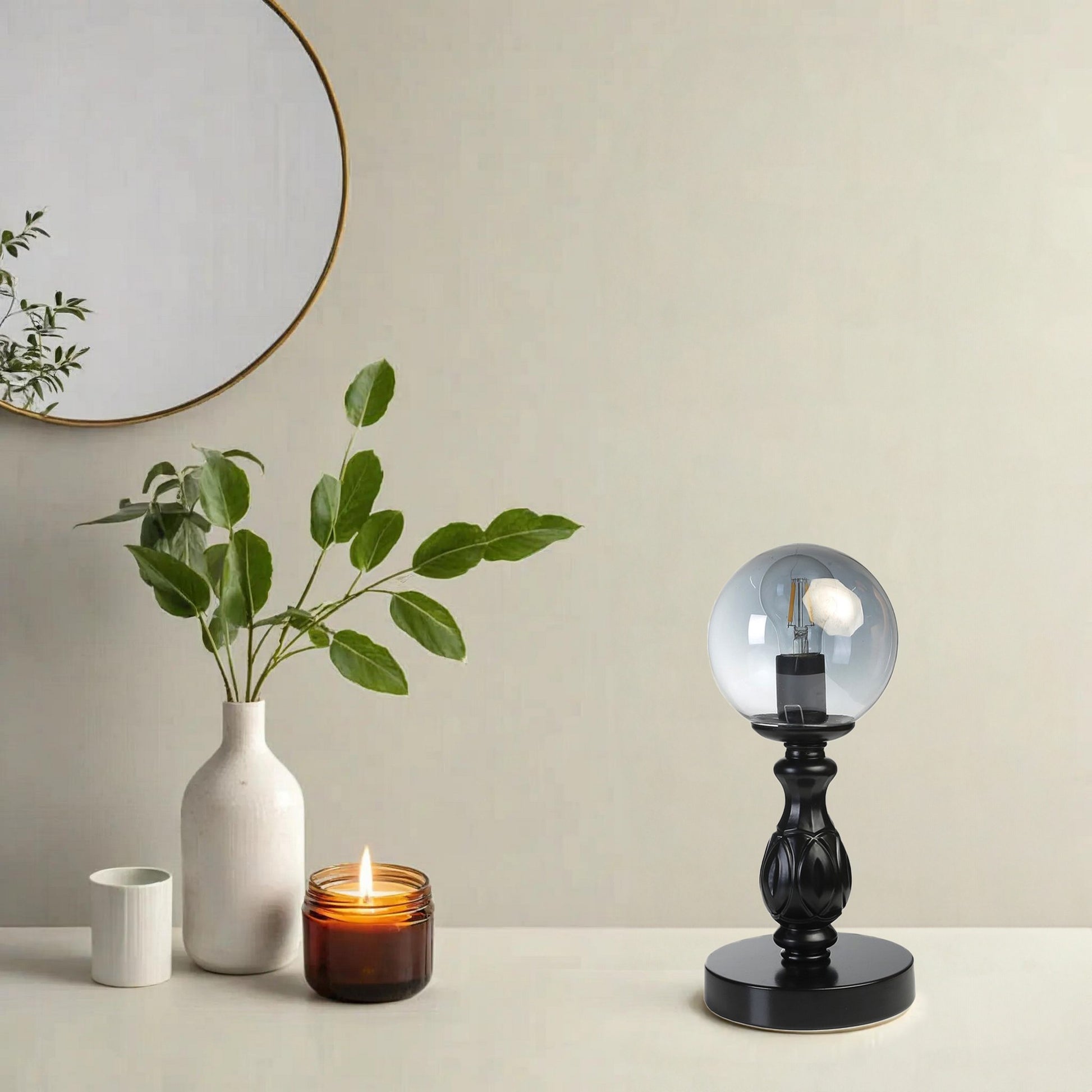 Candeeiro de Mesa – 35 cm – Preto e Fumê – Metal e Vidro