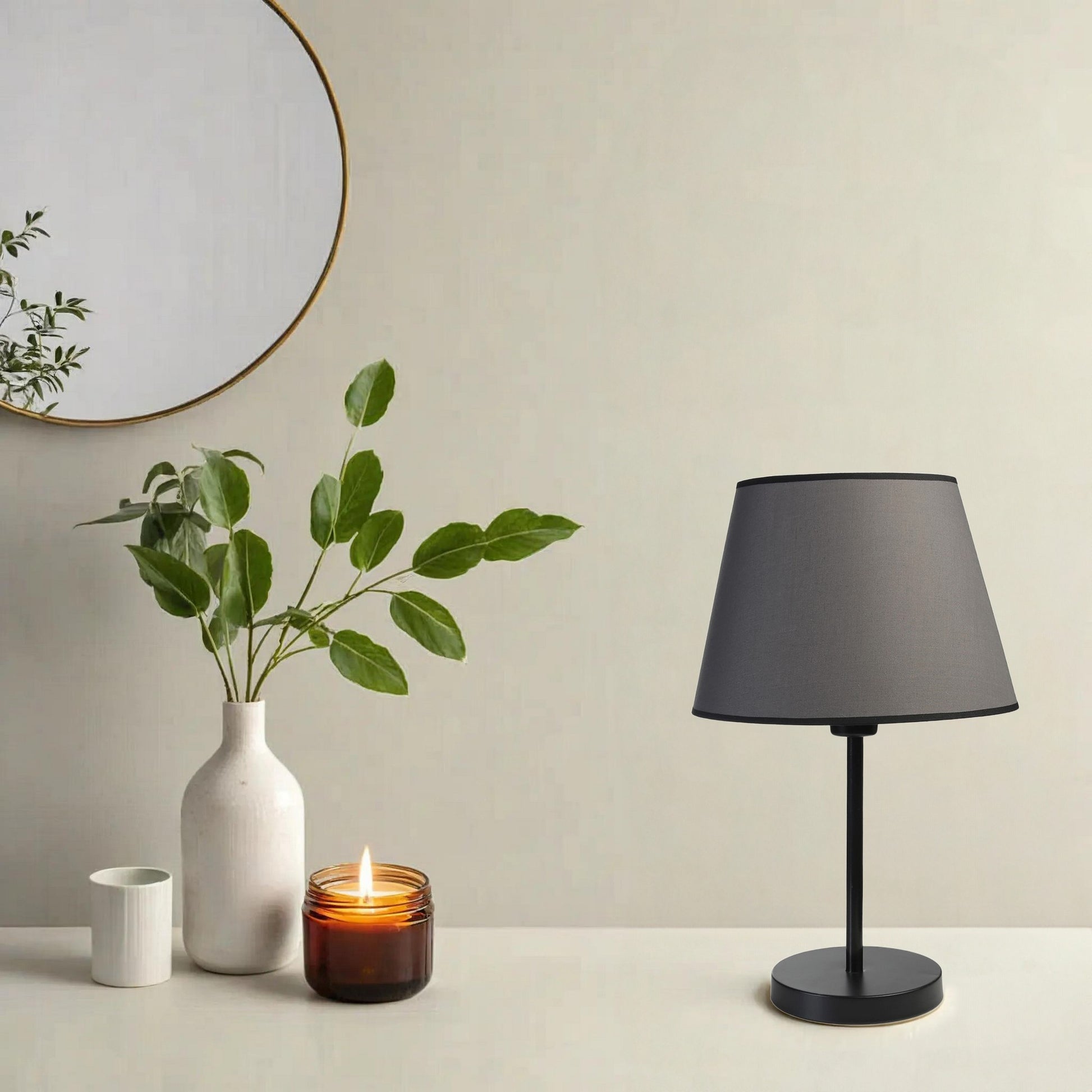 Adicione um toque de elegância à sua casa com nossa Lâmpada de Mesa com Corpo de Metal. Seja colocada na sua mesa de cabeceira, mesa de trabalho ou sala de estar, esta lâmpada elevará instantaneamente a atmosfera do seu espaço. A cúpula de tecido suaviza a luz, criando uma atmosfera acolhedora e convidativa, perfeita para relaxar ou entreter.