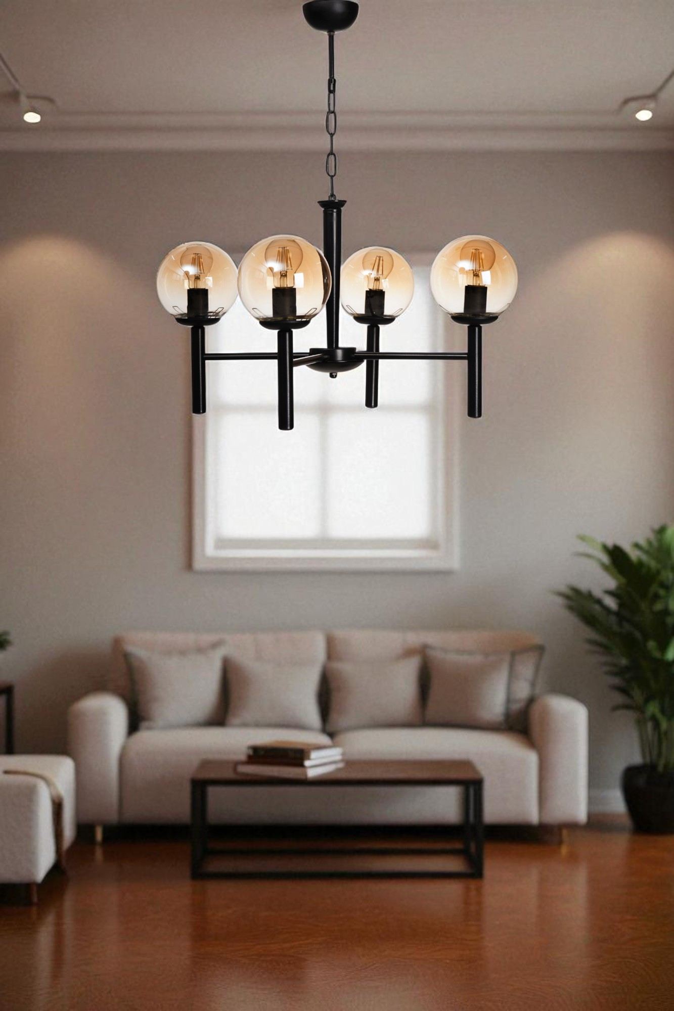 Transforme seu espaço de vida em uma deslumbrante oásis com nosso impressionante Lustre de Mel e Preto. Esta peça requintada apresenta um corpo de metal elegante e uma delicada cúpula de vidro, adicionando um toque de elegância a qualquer ambiente. A altura ajustável permite que você personalize o visual para se adequar perfeitamente ao seu espaço, enquanto os quatro soquetes E27 oferecem iluminação abundante para qualquer ocasião.