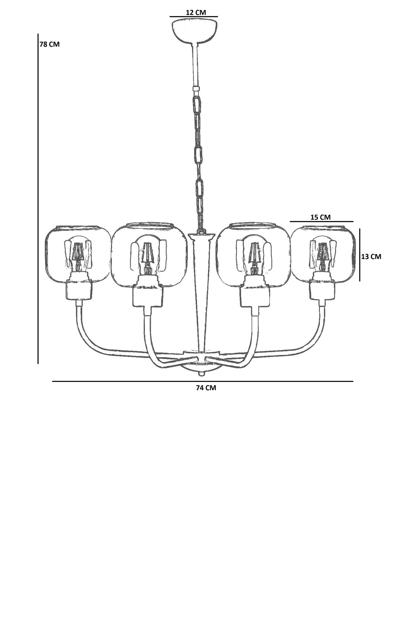 Com uma altura total de 78 cm e um tamanho de base de Ø12 h:7 cm, este lustre é o tamanho perfeito para iluminar seu espaço sem sobrecarregá-lo. O tipo de soquete 4 x E 27 permite lâmpadas de até 40 W (não incluídas), proporcionando luz suficiente para criar uma atmosfera acolhedora e convidativa em qualquer ambiente.
