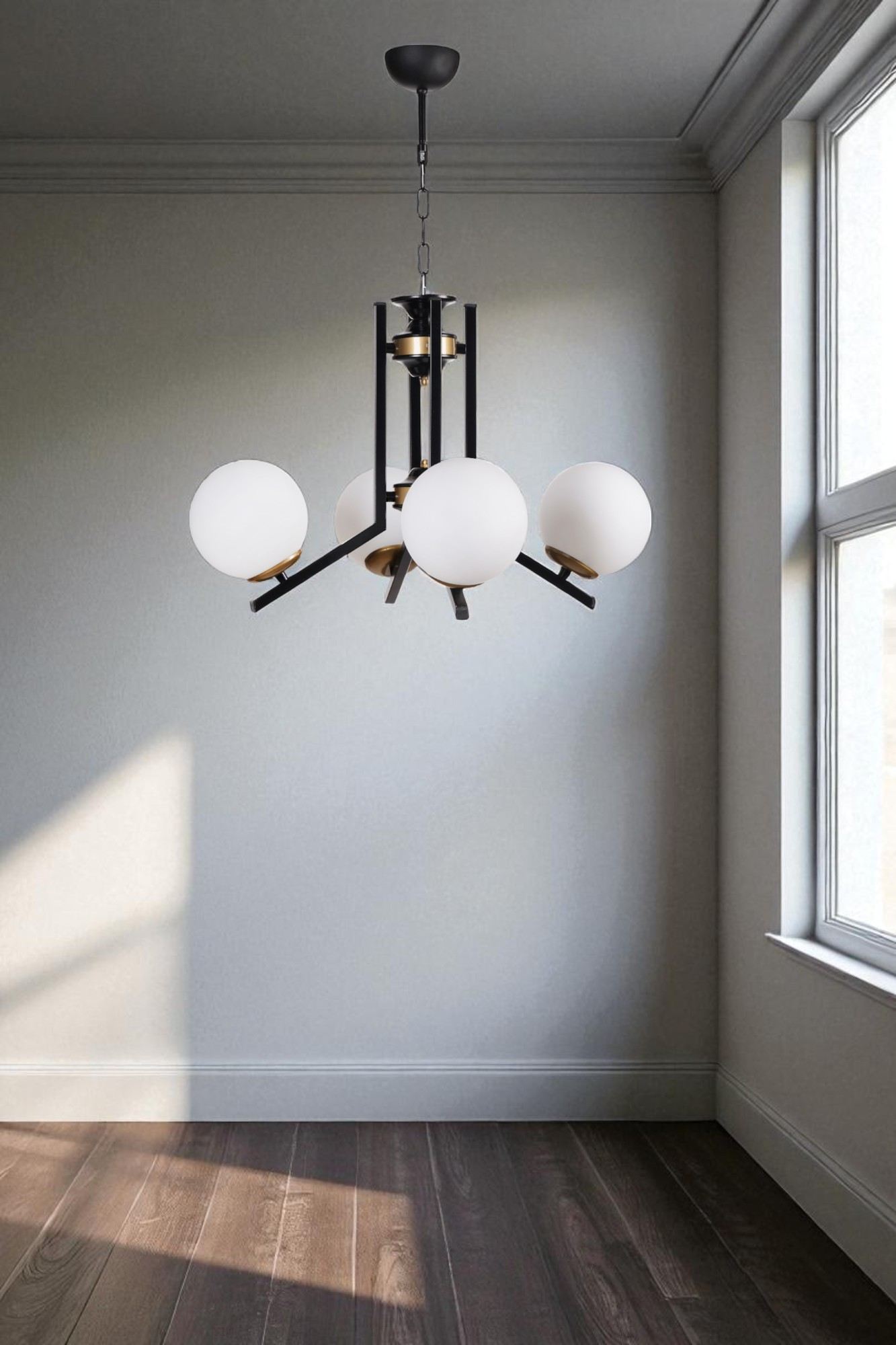 Ilumine sua casa com elegância e estilo com nosso deslumbrante Lustre de Metal e Vidro. Esta peça requintada apresenta um corpo de metal elegante e uma delicada cúpula de vidro, criando um belo contraste que instantaneamente elevará qualquer ambiente em sua casa. A altura ajustável permite que você personalize o visual para se adequar perfeitamente ao seu espaço, enquanto os 4 soquetes E27 oferecem iluminação ampla para qualquer ocasião.