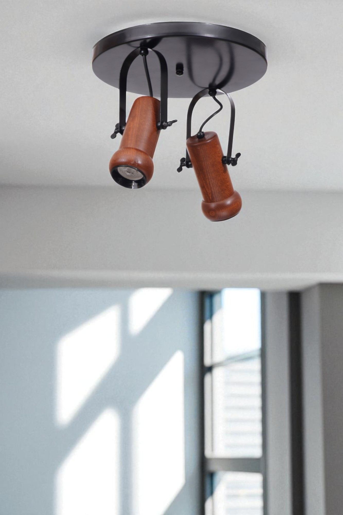 Candeeiro de Teto – 26 cm – Preto e Nogueira – Metal e Madeira