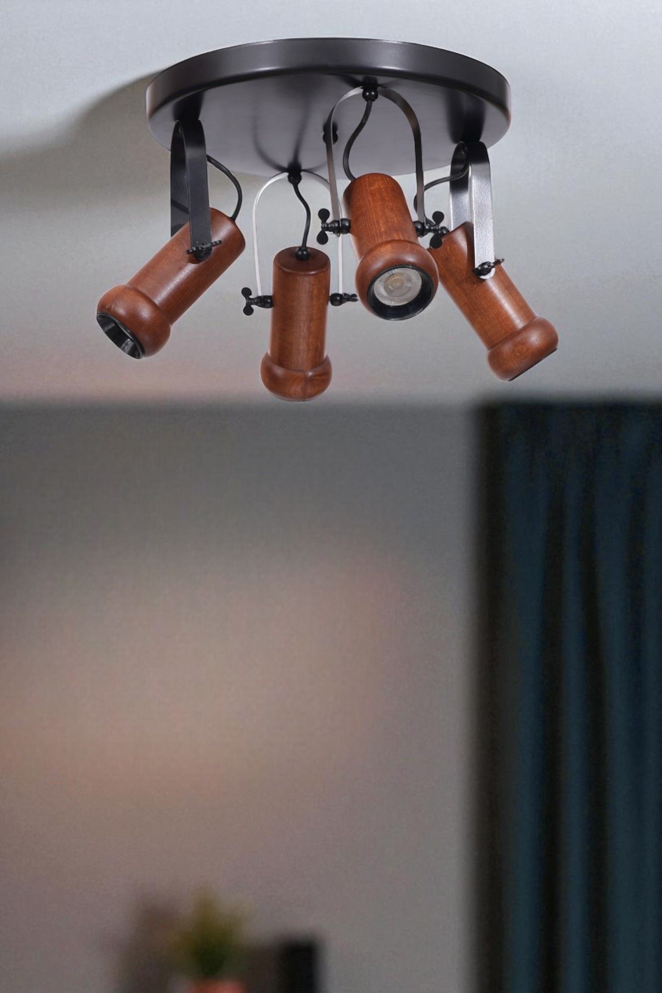 Candeeiro de Teto – Ø8 h:15 cm – Preto e Nogueira – Metal e Madeira