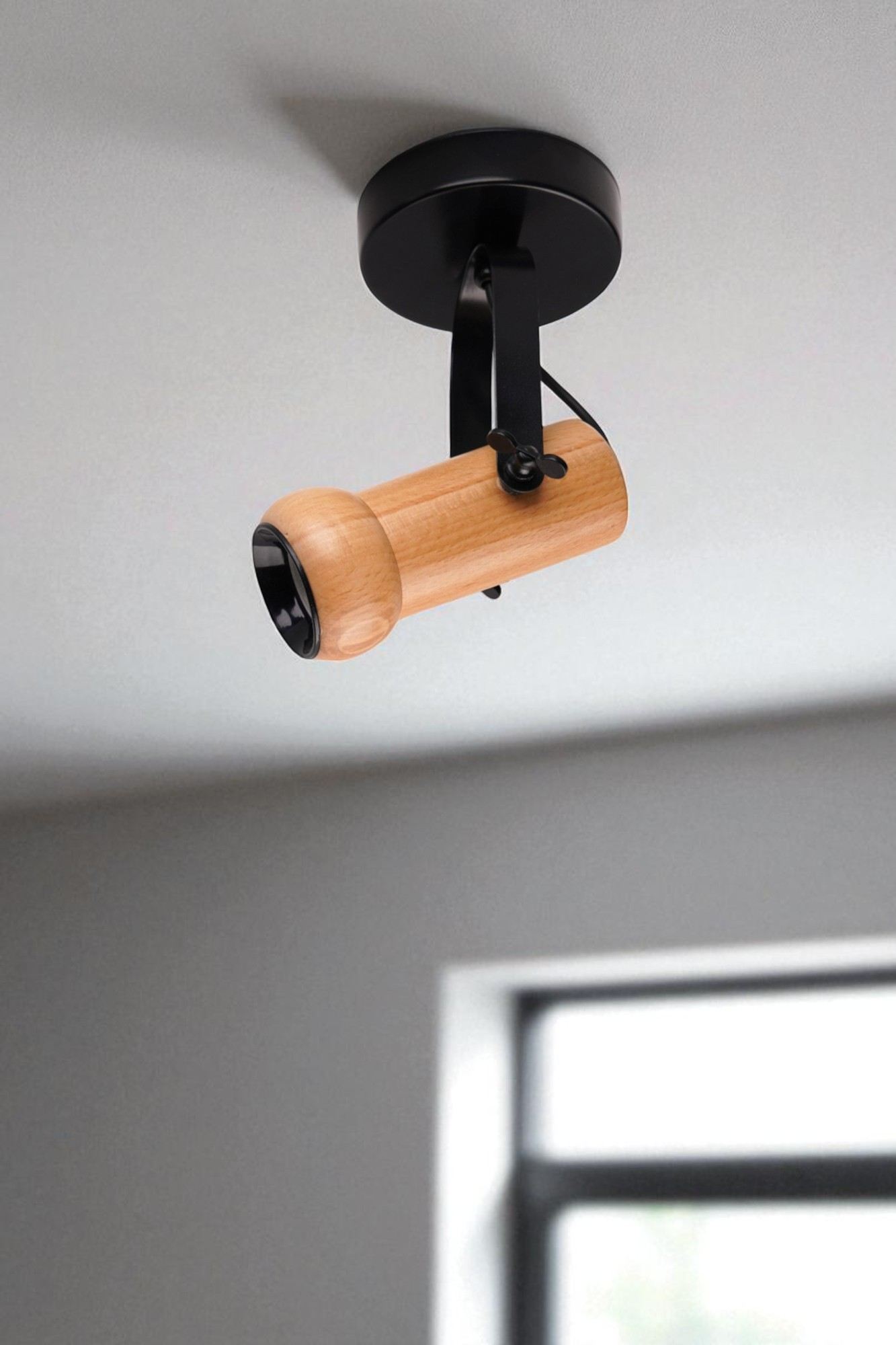 Candeeiro de Teto – Ø8 h:15 cm – Preto e Carvalho – Metal e Madeira