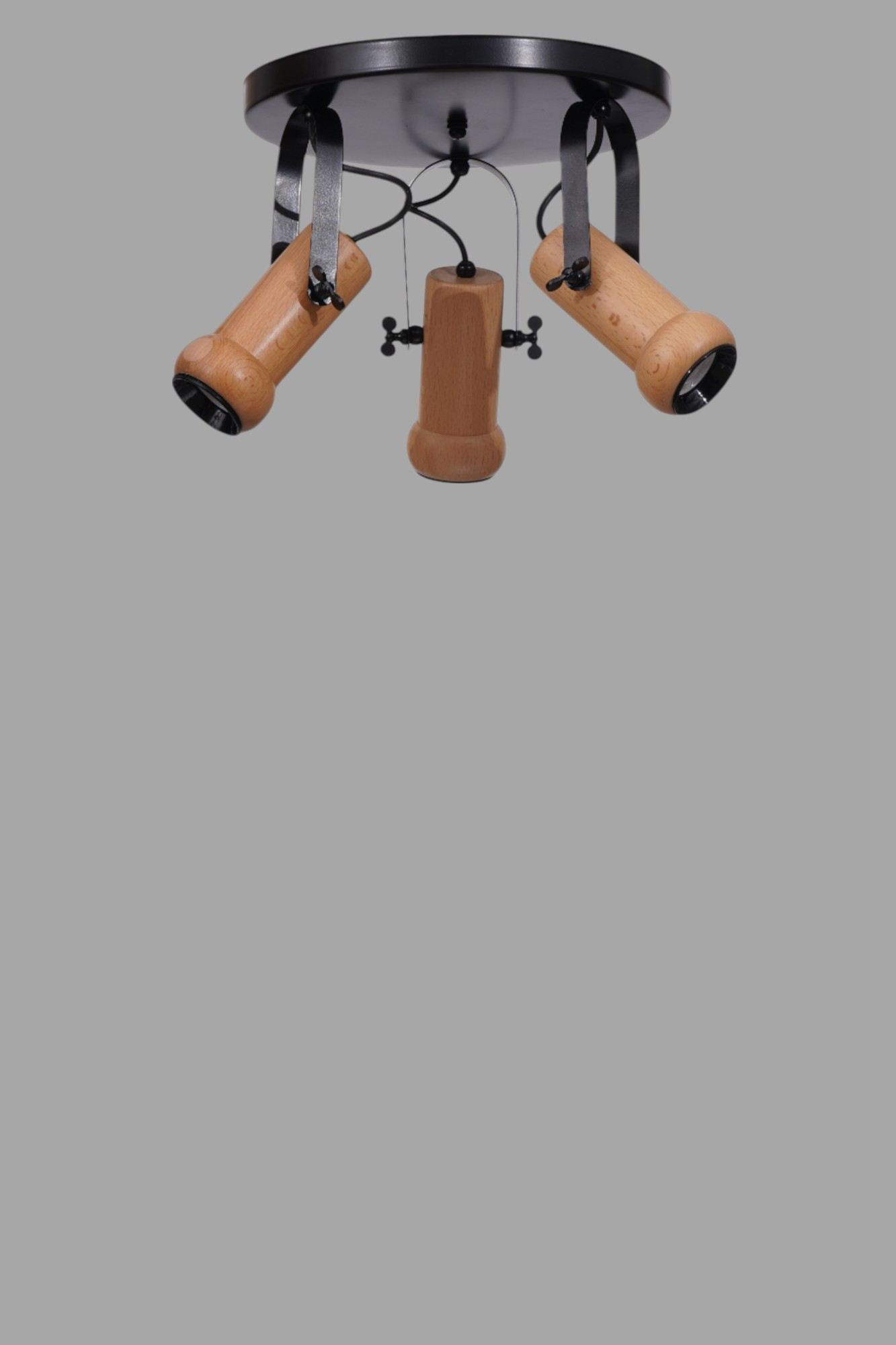 Candeeiro de Teto – Ø8 h:15 cm – Preto e Carvalho – Metal e Madeira