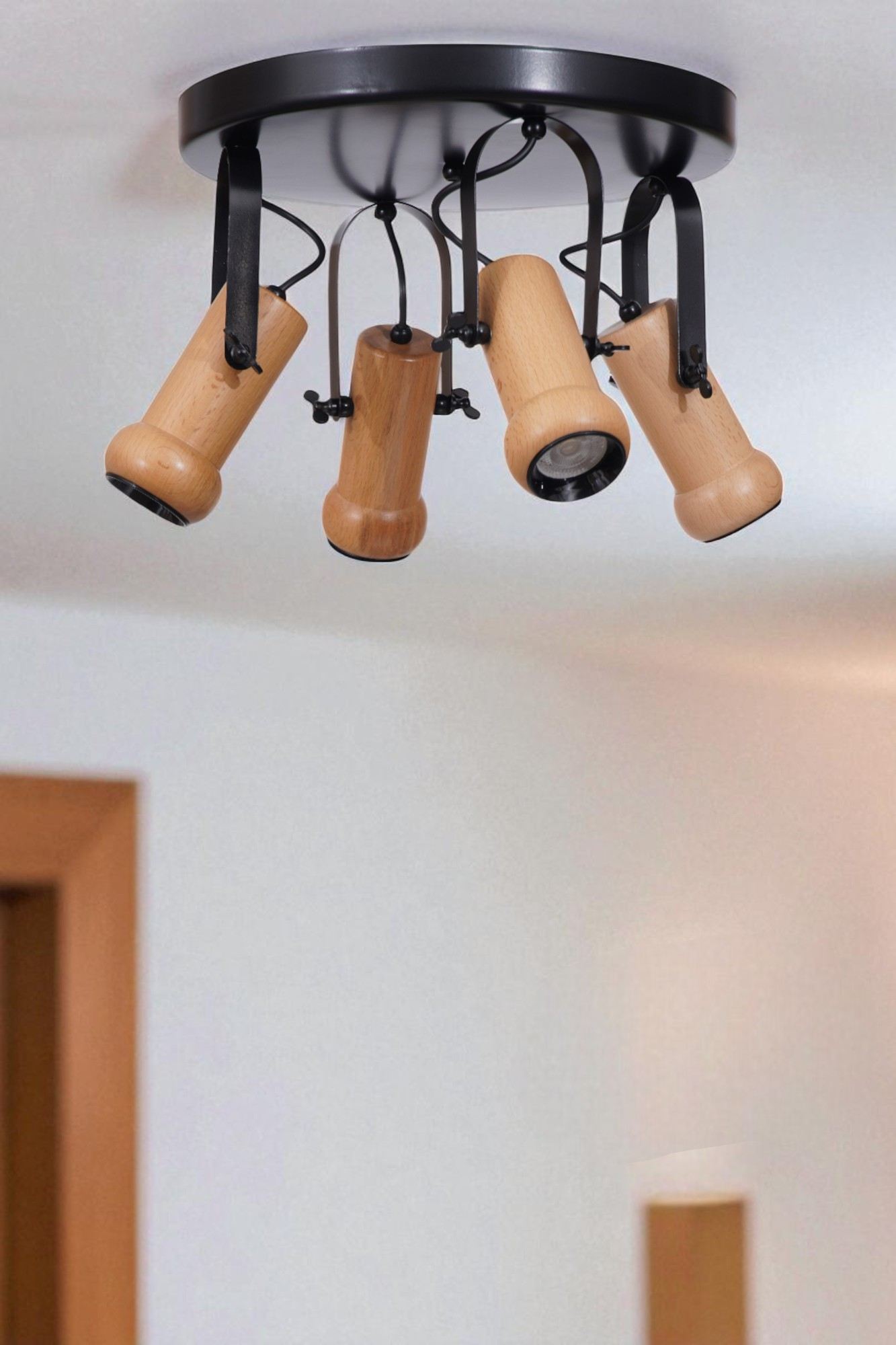 Candeeiro de Teto – 26cm – Preto e Carvalho – Metal e Madeira