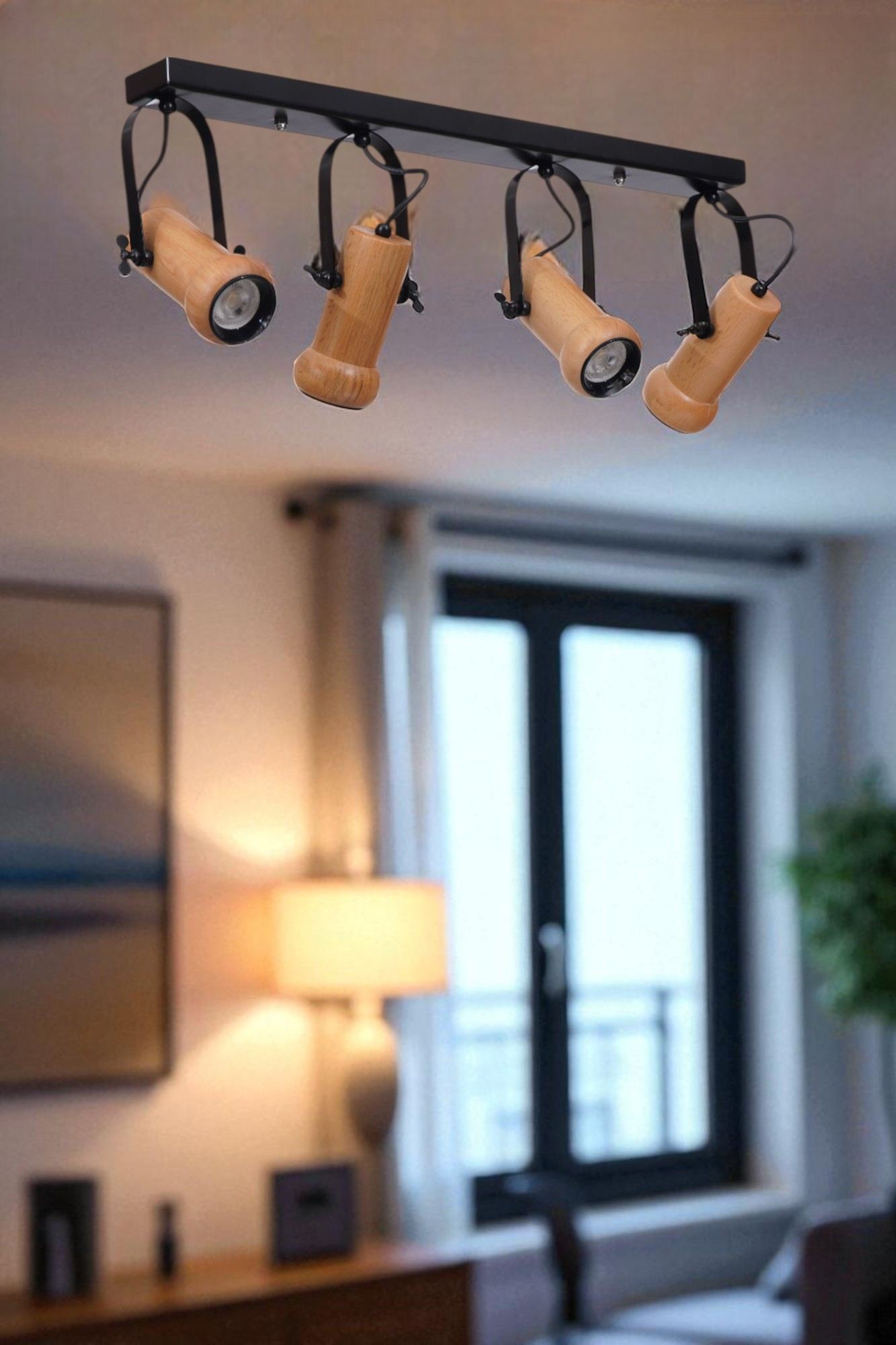 Candeeiro de Teto – Ø8 h:15 cm – Preto e Carvalho – Metal e Madeira