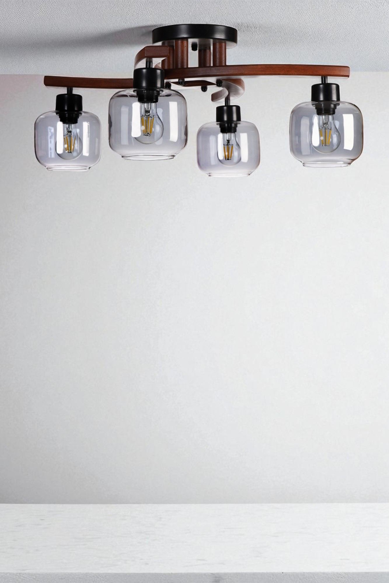 Candeeiro de Teto – Ø15 h:13 cm – Cinza, Nogueira, Preto – Metal e Vidro