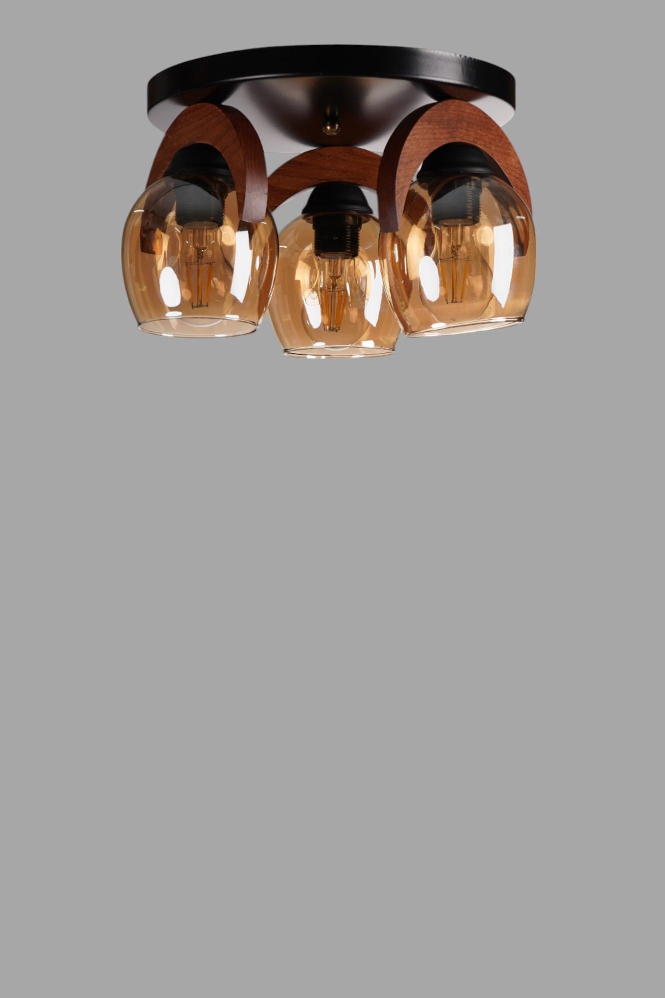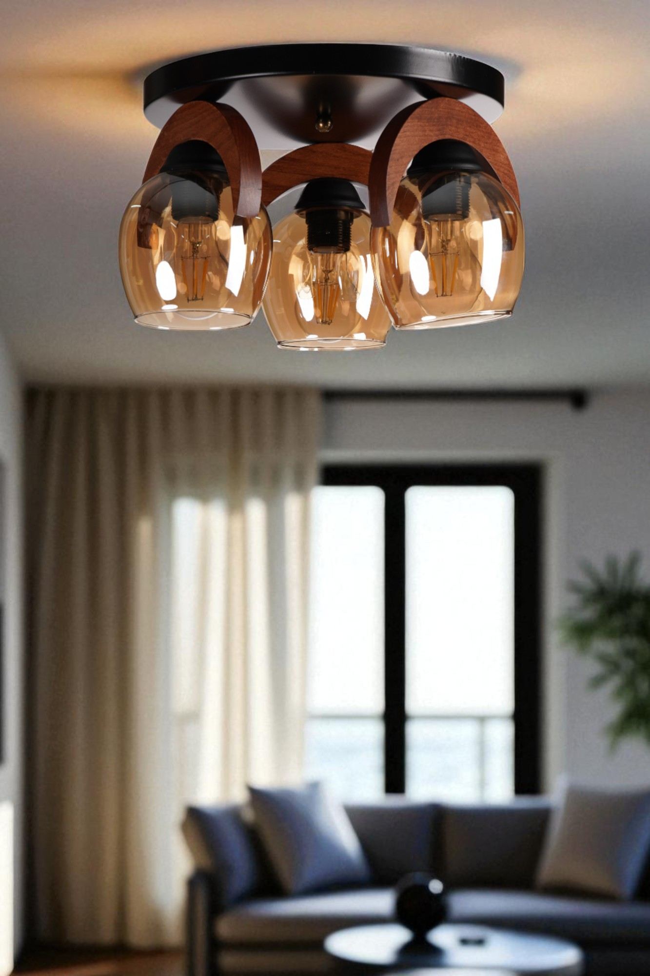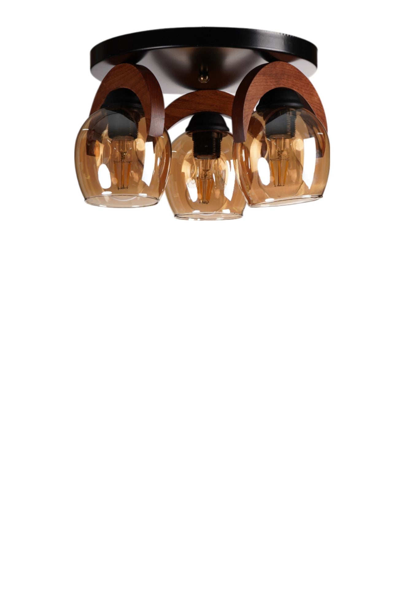 Candeeiro de Teto – 21 cm – Mel, Noz, Preto – Metal e Madeira