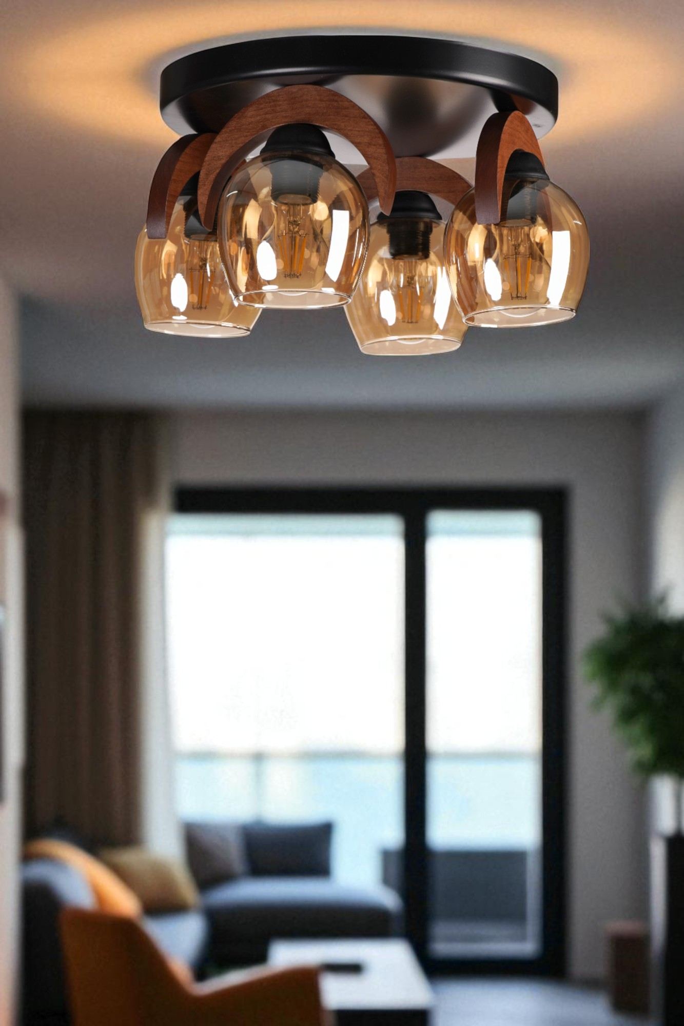 Com quatro soquetes E27, este lustre proporciona iluminação abundante para qualquer ambiente. Basta adicionar suas lâmpadas favoritas (não incluídas) para criar um brilho acolhedor e convidativo. O acabamento preto elegante complementa os tons de mel e noz, adicionando um toque de elegância ao seu espaço. Seja recebendo um jantar ou desfrutando de uma noite tranquila em casa, este lustre irá realçar a atmosfera de qualquer ambiente.