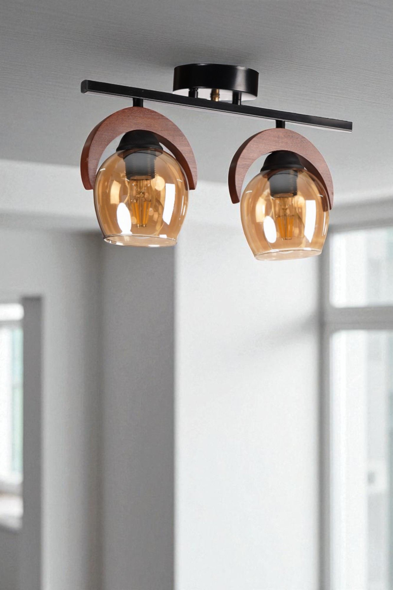 Candeeiro de Teto – Ø12 h:15 cm – Mel, Noz, Preto – Metal e Madeira