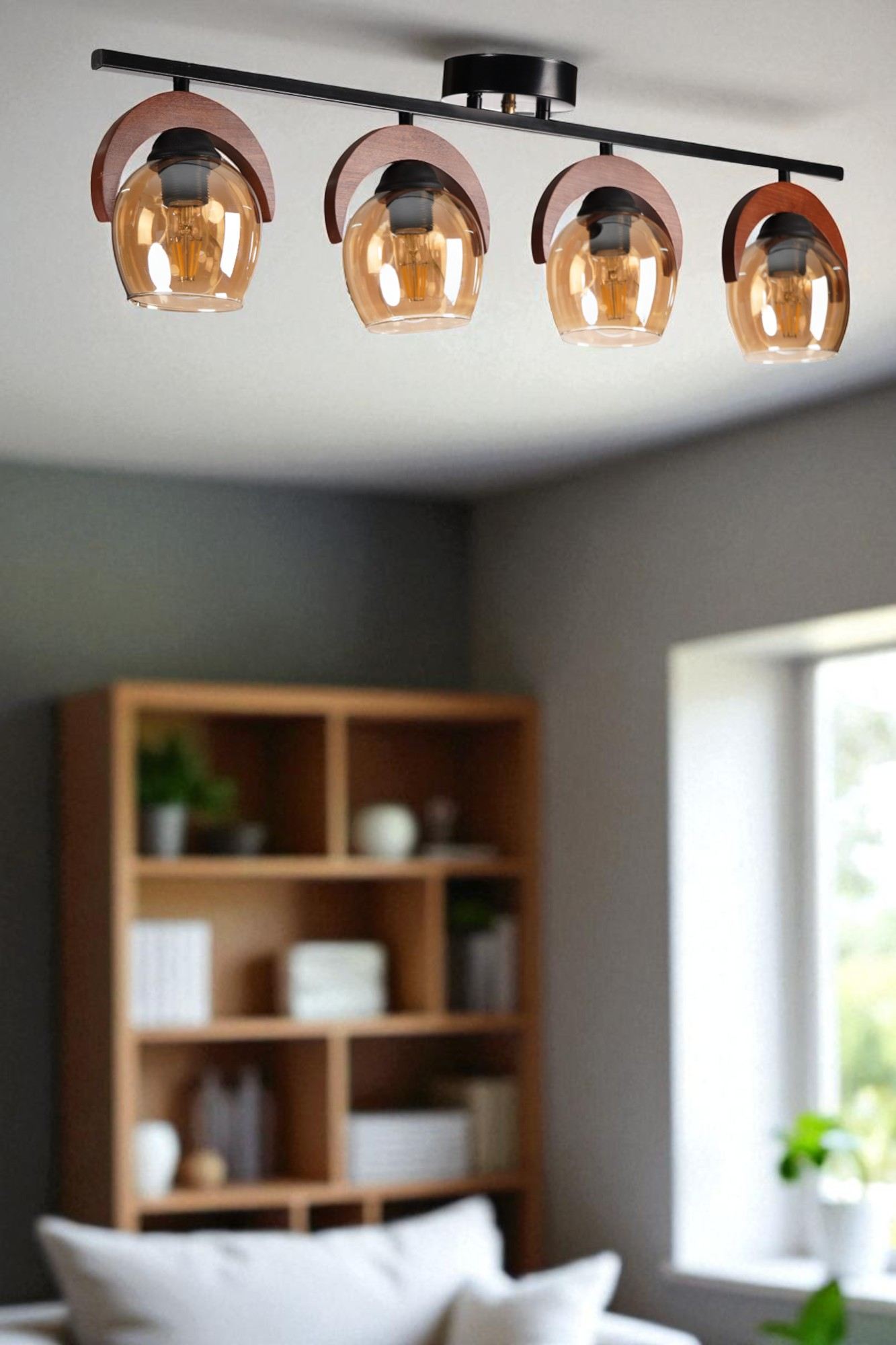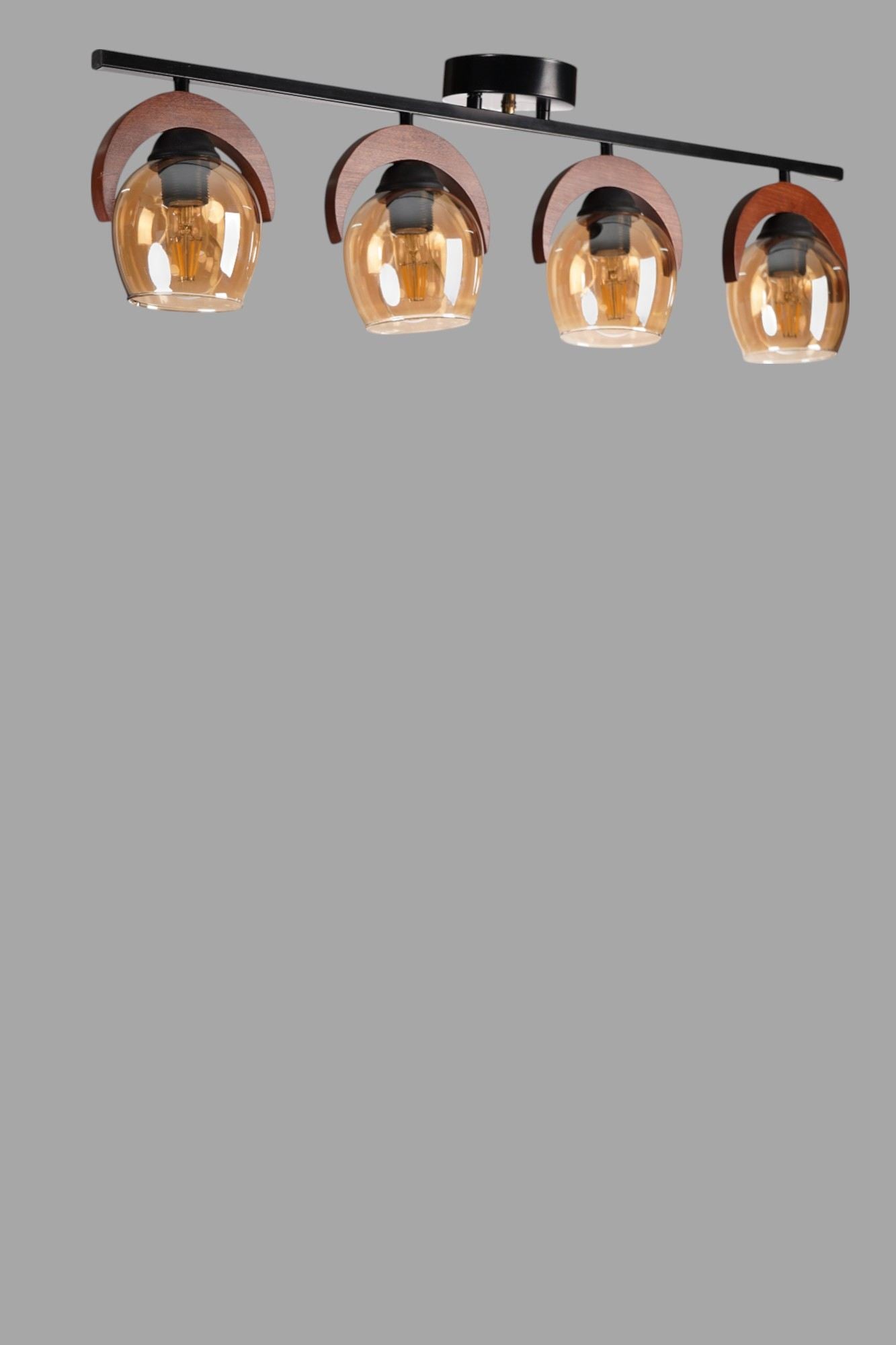 Candeeiro de Teto – 26 cm – Mel, Noz e Preto – Metal e Vidro