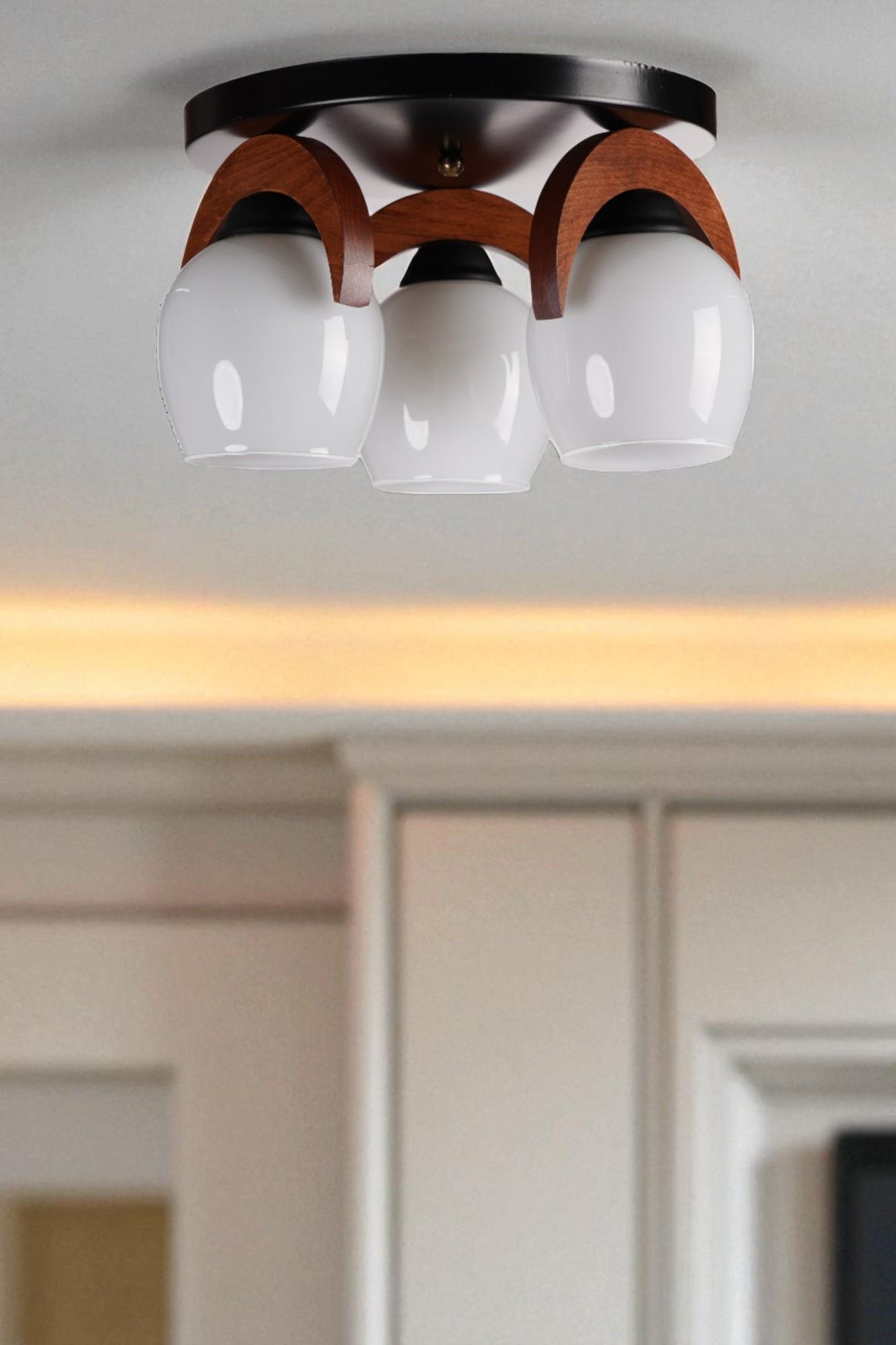 Candeeiro de Teto – Ø12 cm – Branco, Nogueira, Preto – Metal e Vidro