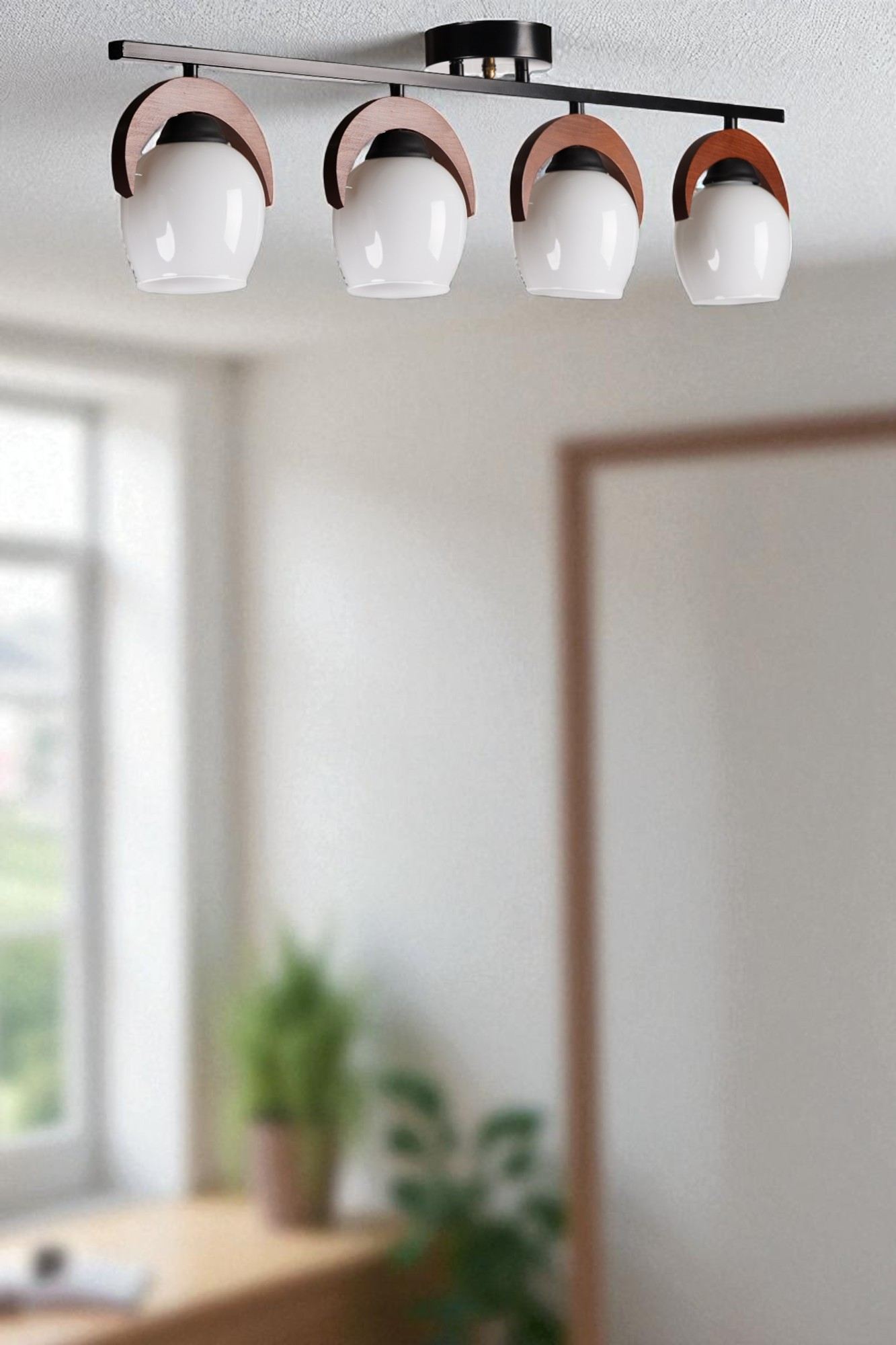 Candeeiro de Teto – Ø12 h:15 cm – Branco, Nogueira, Preto – Metal e Madeira