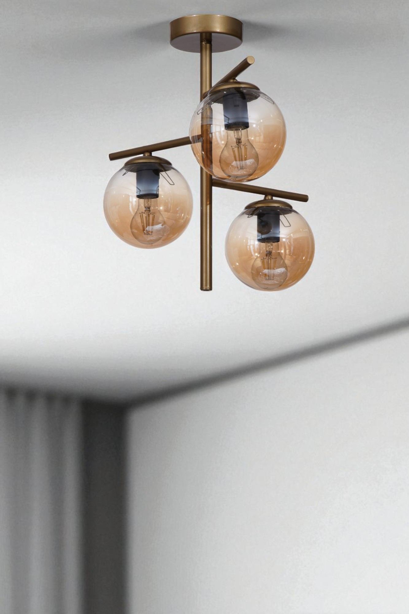 Candeeiro de Teto – 44 cm – Mel e Ouro – Metal e Vidro