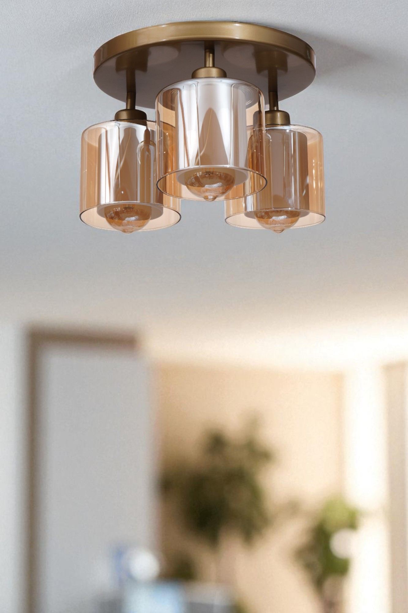 Candeeiro de Teto – Ø14 h:12 cm – Mel e Ouro – Metal e Vidro