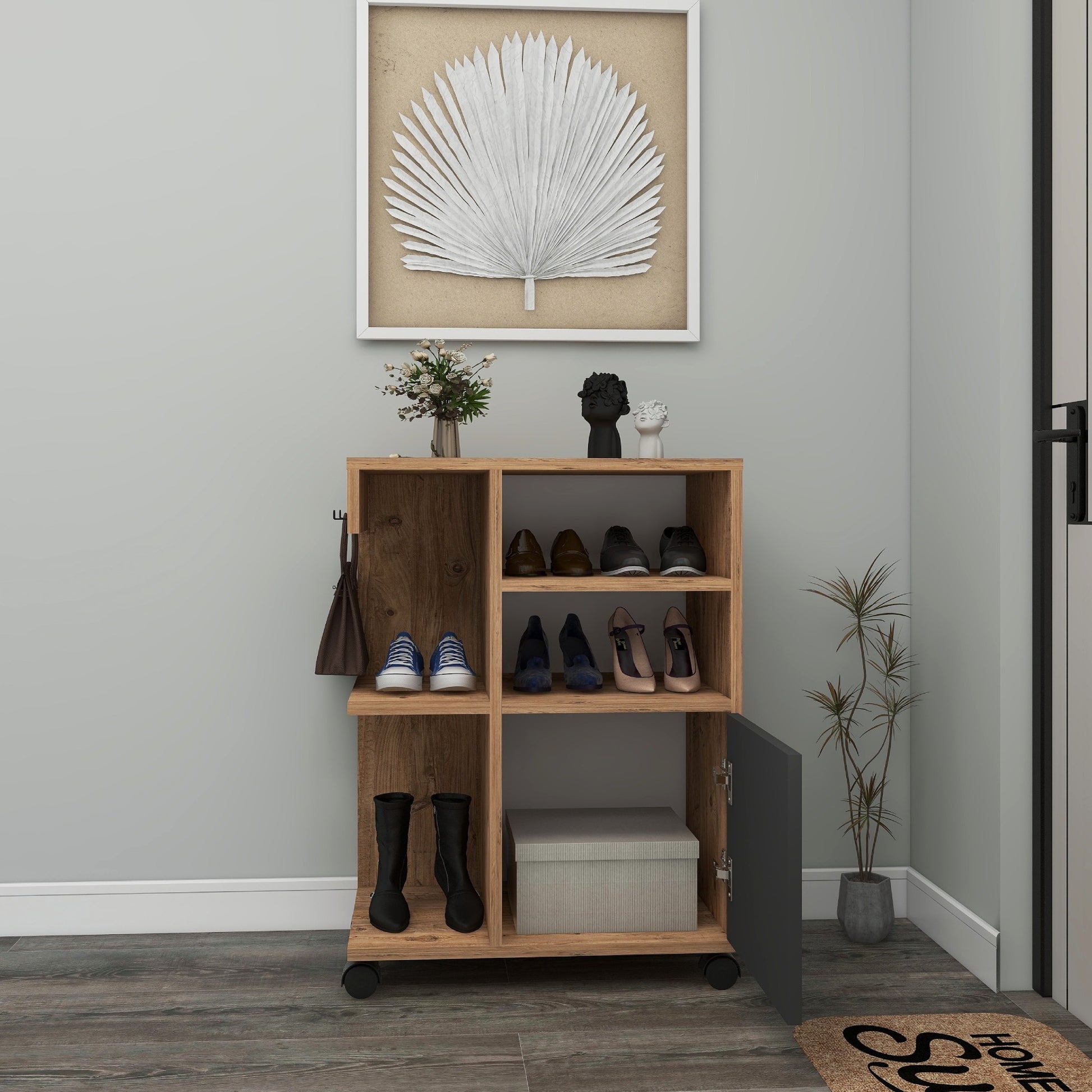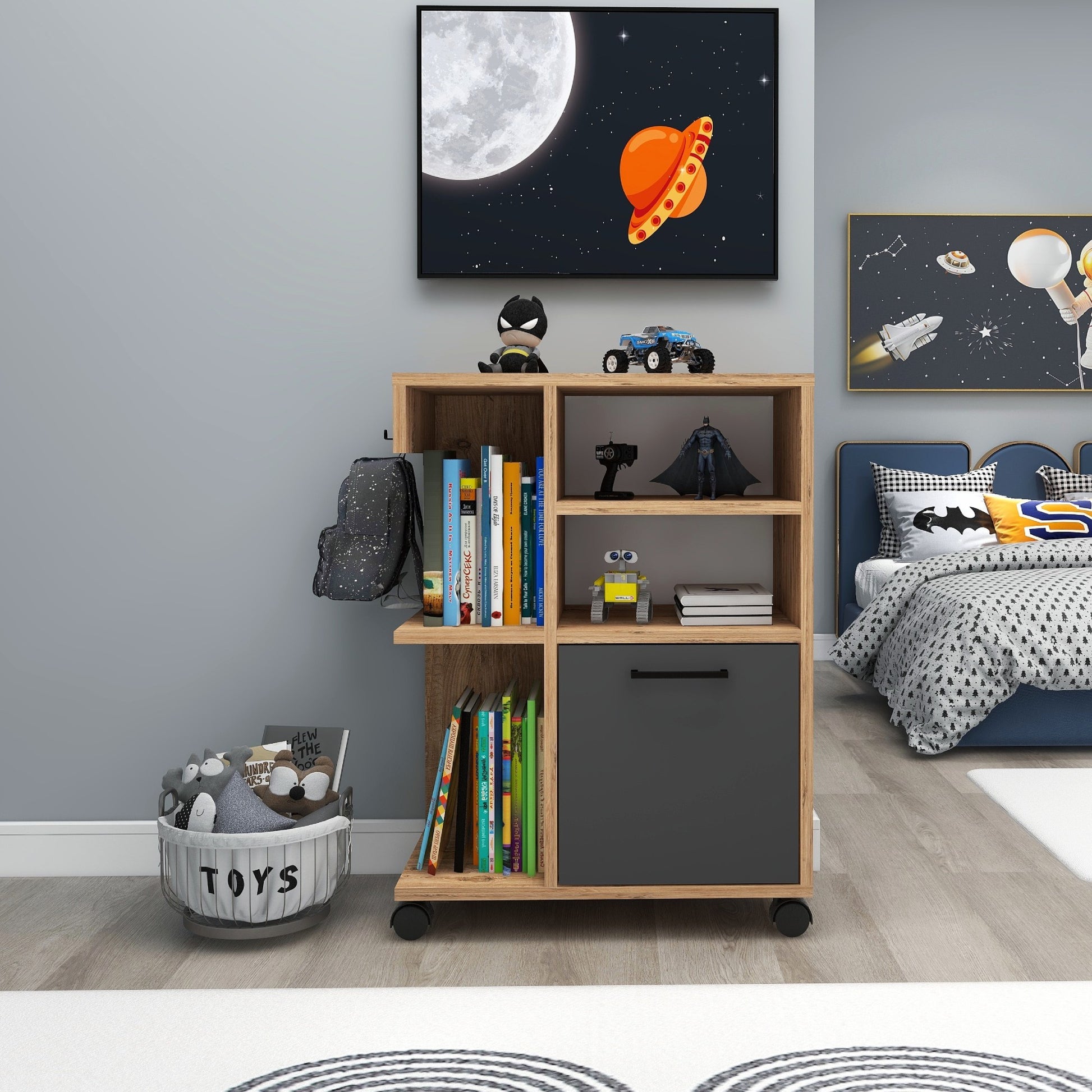 Armário multiusos – 60 cm x 80.9 cm x 35 cm – Pinho Atlântico e Antracite – Painel de partículas revestido a melamina