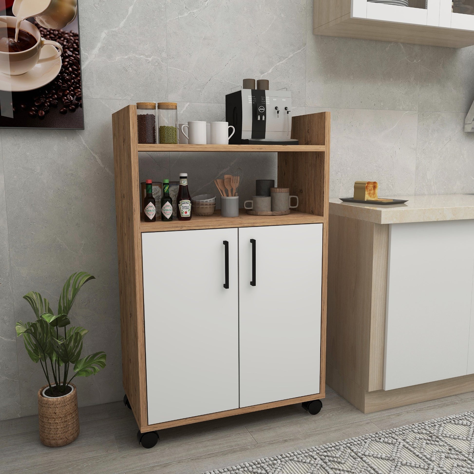 Armário multiusos – 60 cm x 97.3 cm x 35 cm – Branco e Pinho Atlântico – Painel de Partículas