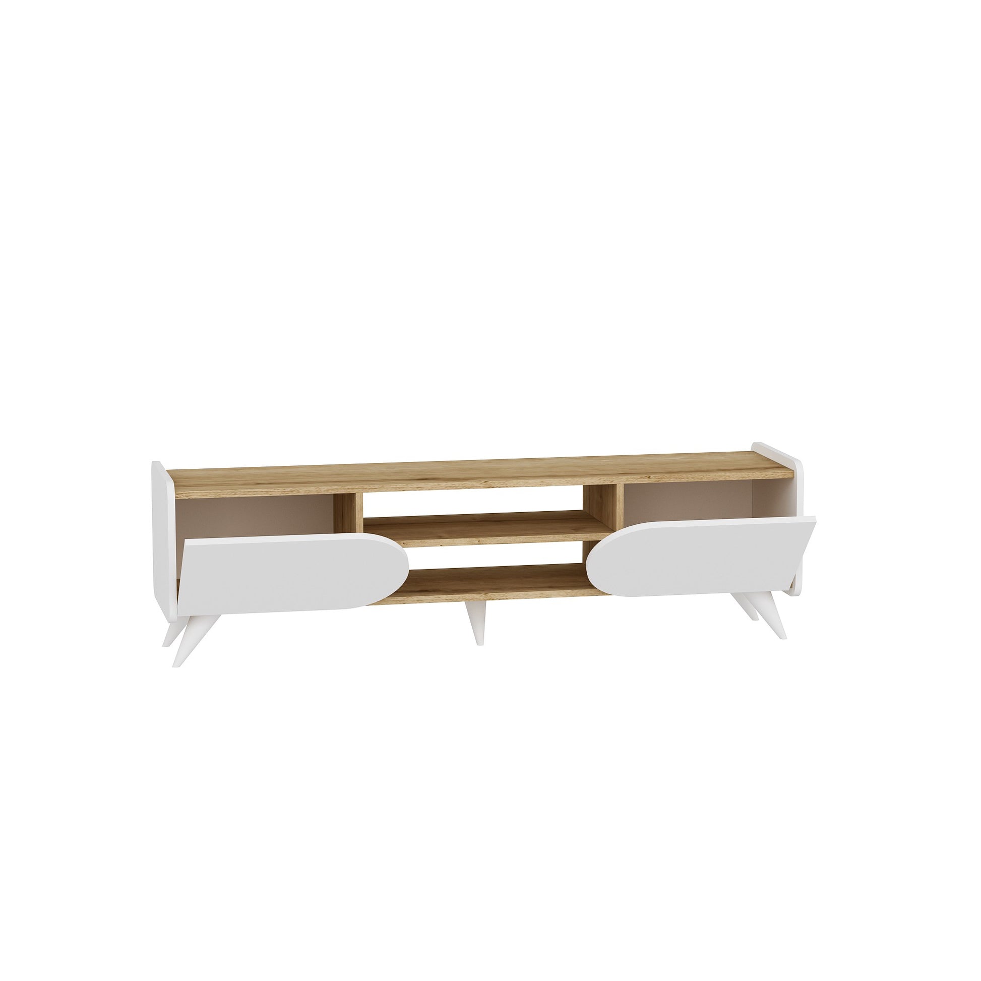 Fabricado a partir de um painel de partículas revestido a 100% melamina e suportado por uma estrutura metálica robusta, este suporte para televisão foi concebido para durar. A espessura de 18 mm garante durabilidade e estabilidade, para que possa desfrutar do seu centro de entretenimento durante muitos anos.