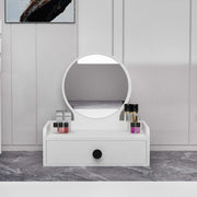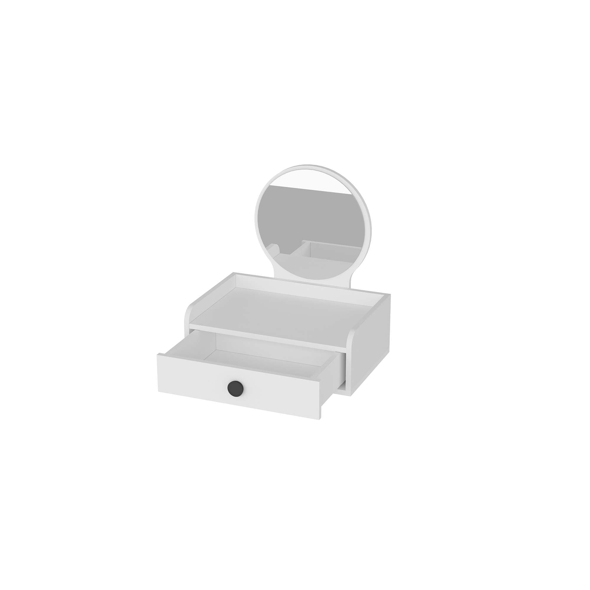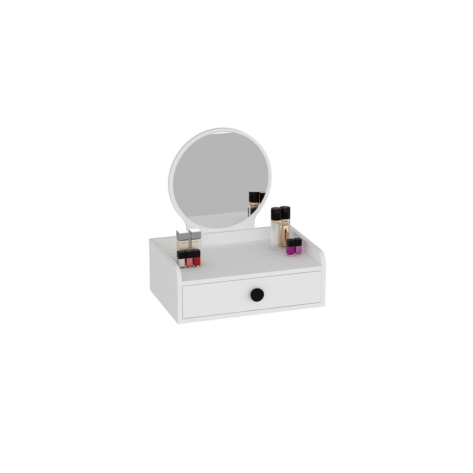 Transforme sua rotina matinal com nossa deslumbrante mesa de maquiagem, projetada para trazer elegância e funcionalidade ao seu espaço. Esta mesa de maquiagem é feita de 100% de aglomerado revestido de melamina, garantindo durabilidade e um acabamento elegante que elevará qualquer ambiente.