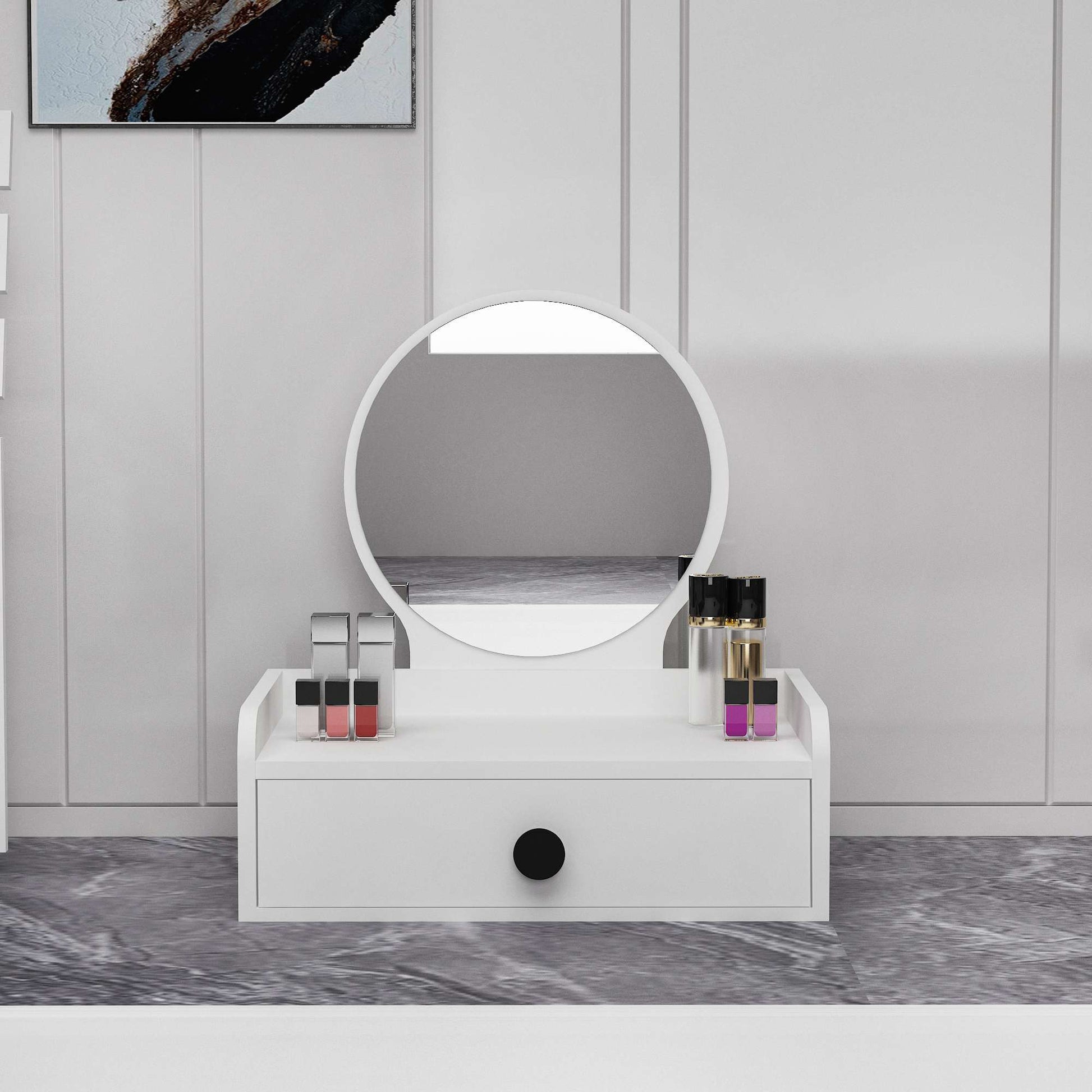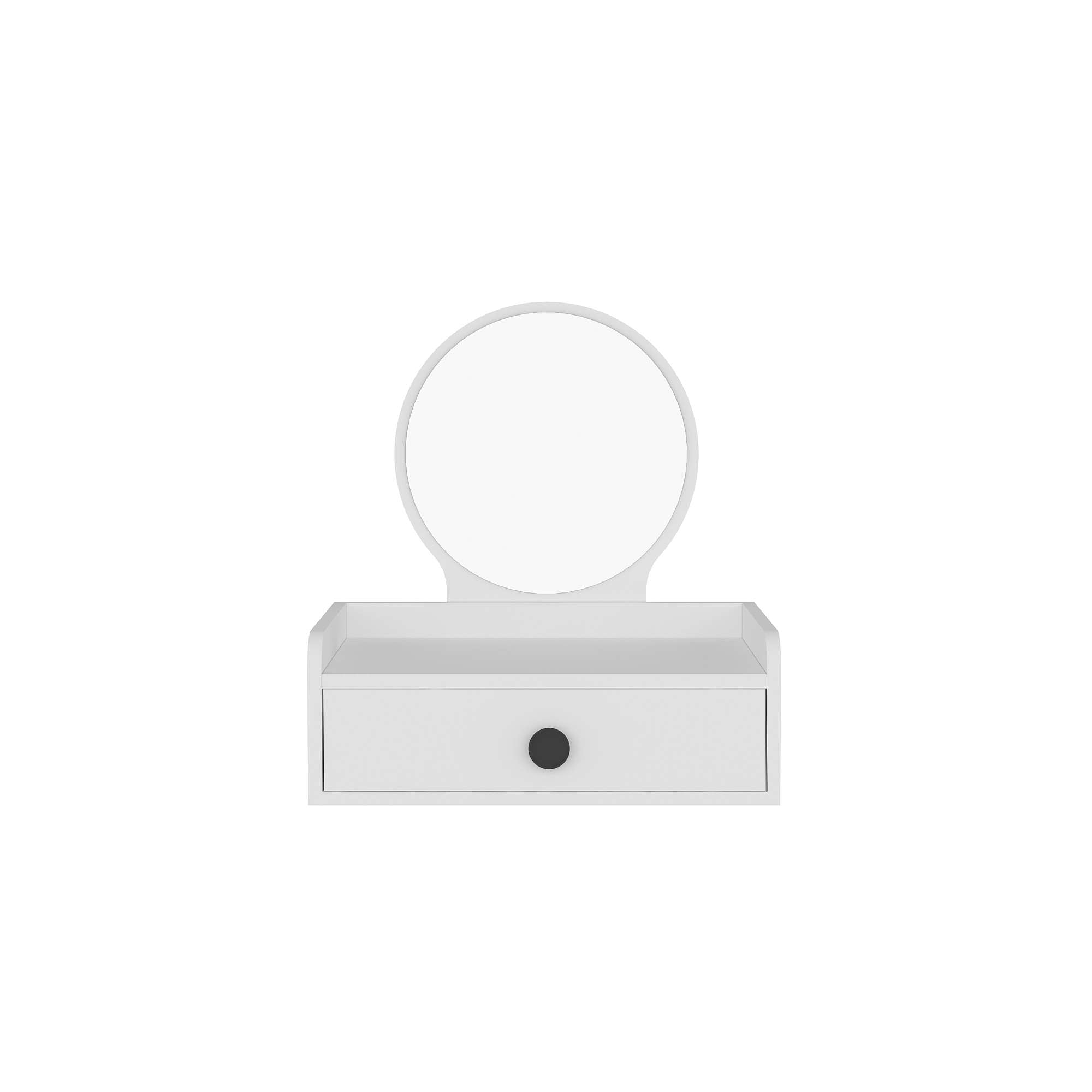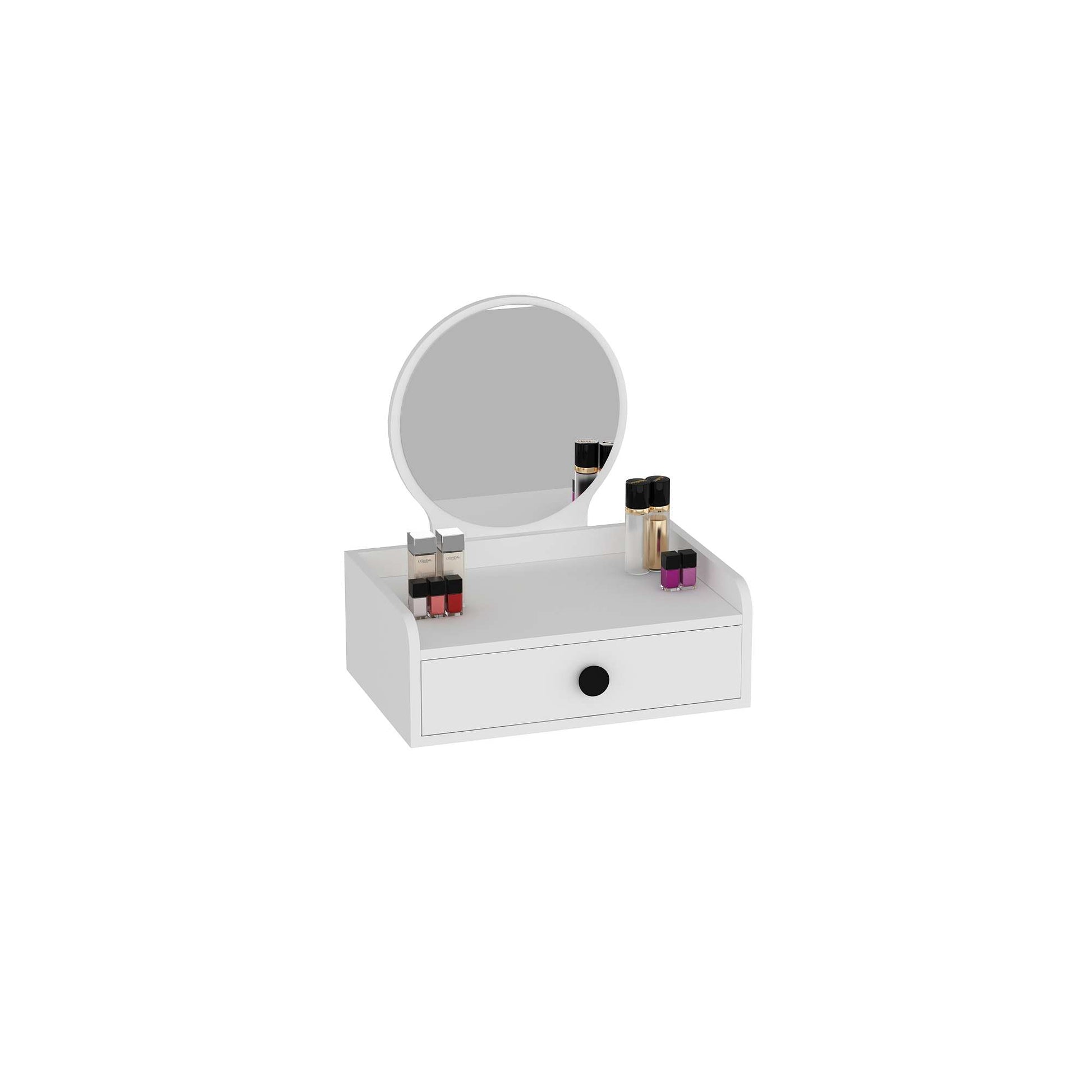 Esta mesa de maquiagem foi projetada para ser prática e estilosa, com um acabamento branco elegante que complementa qualquer decoração. A altura total da mesa é de 65,2cm, tornando-a a altura perfeita para um uso confortável. Além disso, esta mesa pode ser facilmente fixada na parede, economizando espaço e adicionando um toque moderno ao seu quarto.