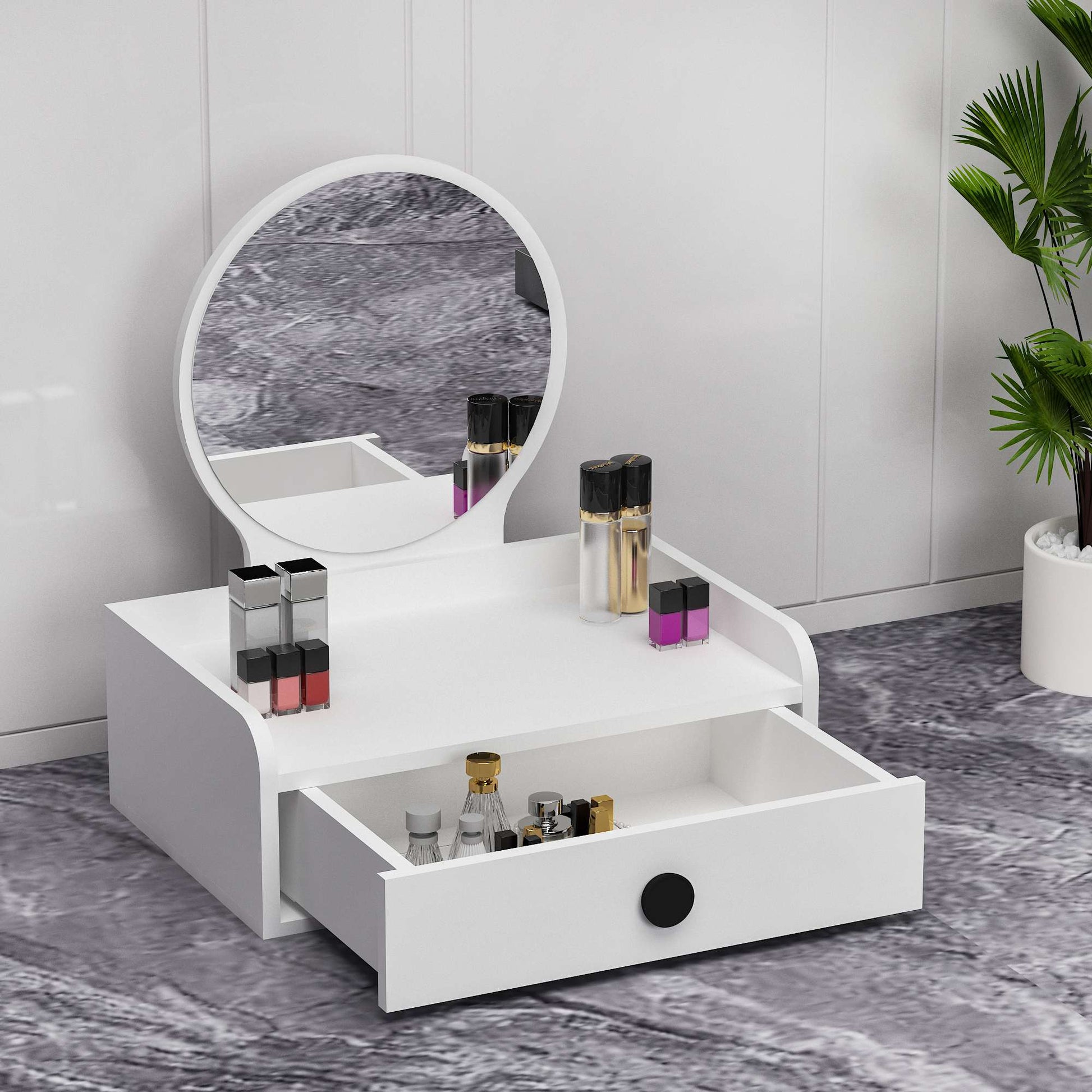 - Tamanho da mesa de maquiagem: 60cm (L) x 21,8cm (A) x 40cm (P)
