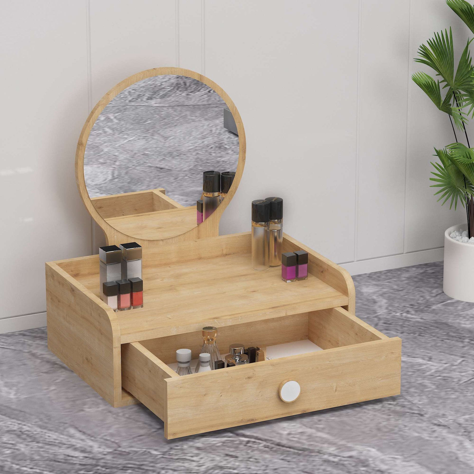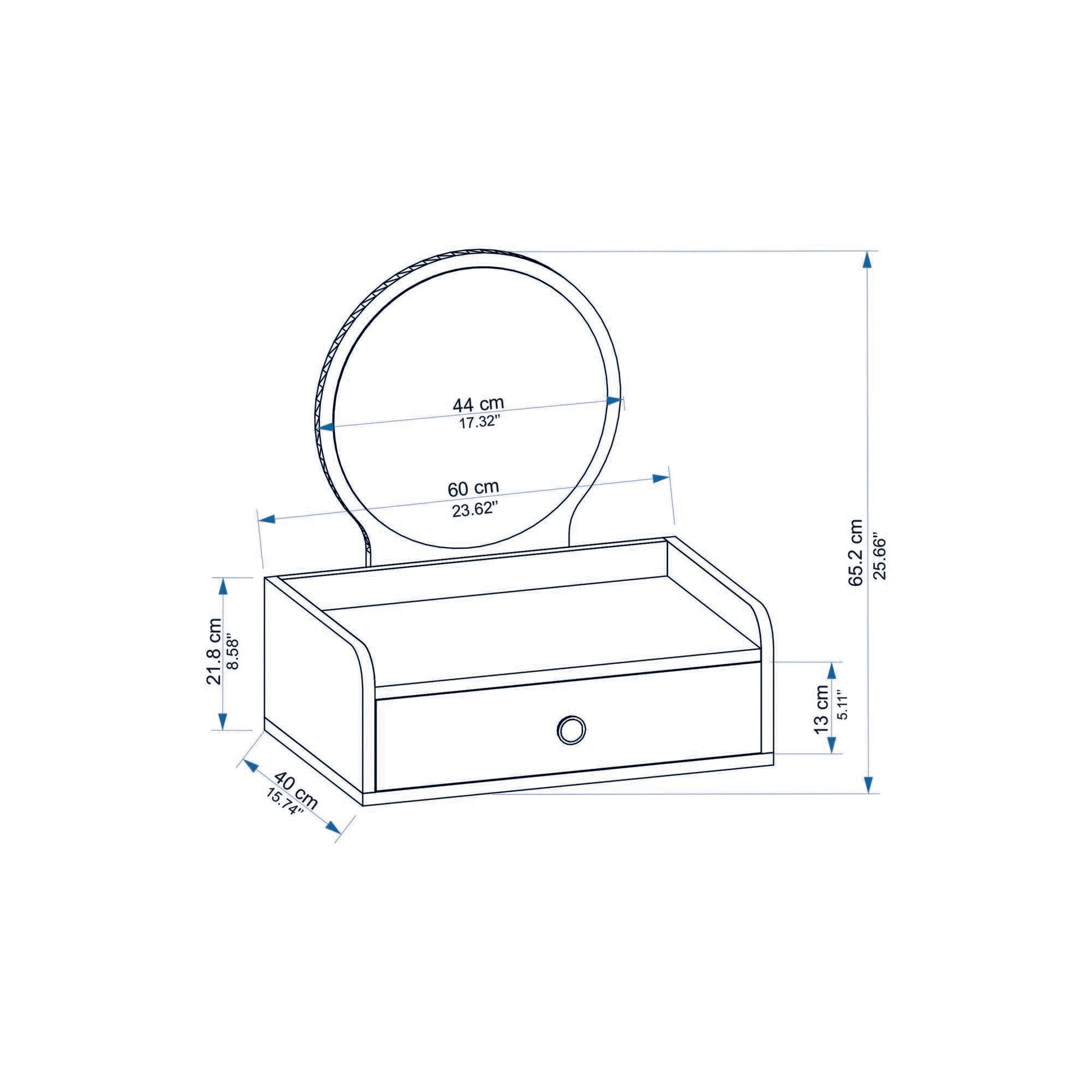 - Tamanho da Mesa de Maquiagem: Largura: 60cm, Altura: 21.8cm, Profundidade: 40cm