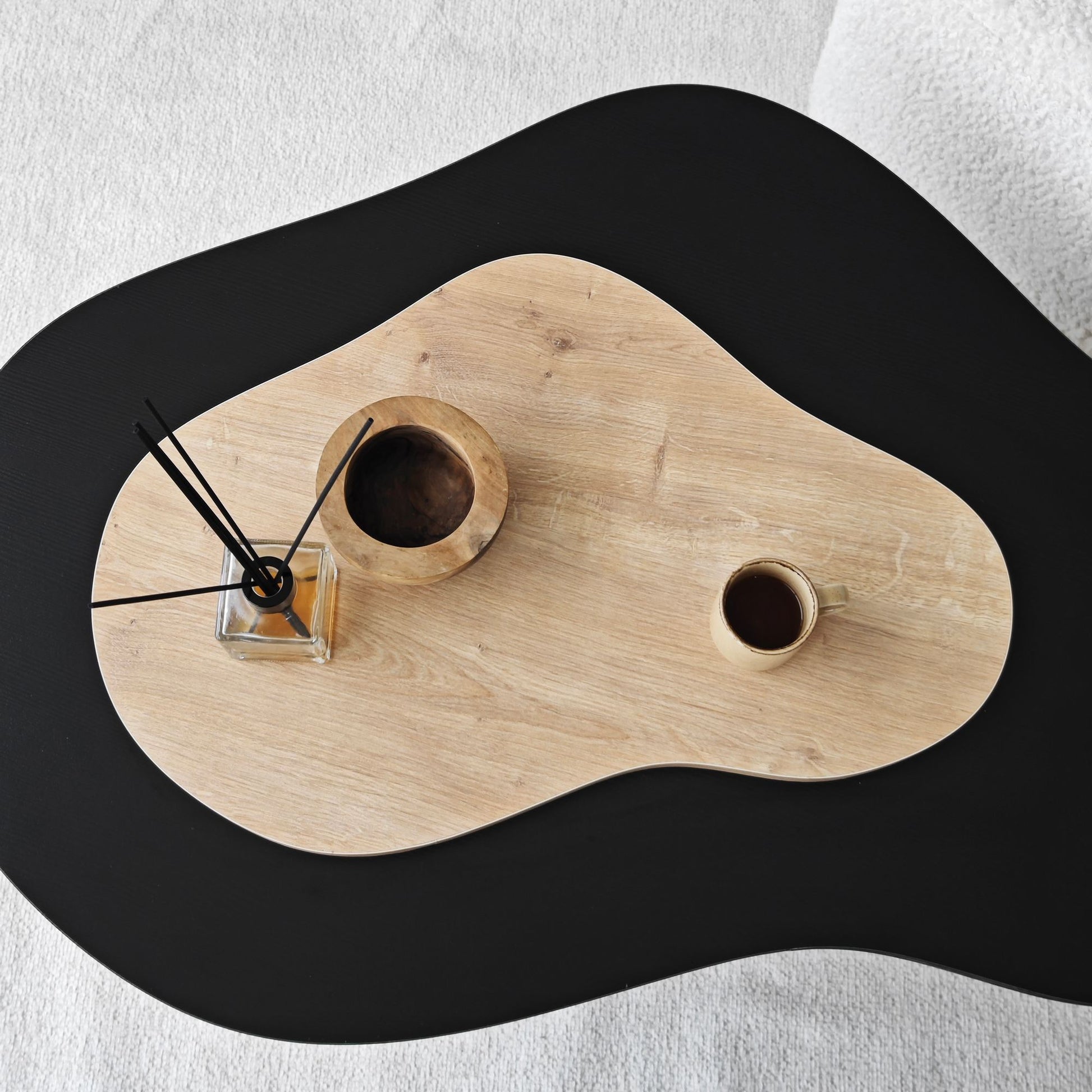 Mesa de Centro – 105 cm x 35 cm x 65 cm – Preto e Carvalho Safira – Painel de partículas revestido a melamina