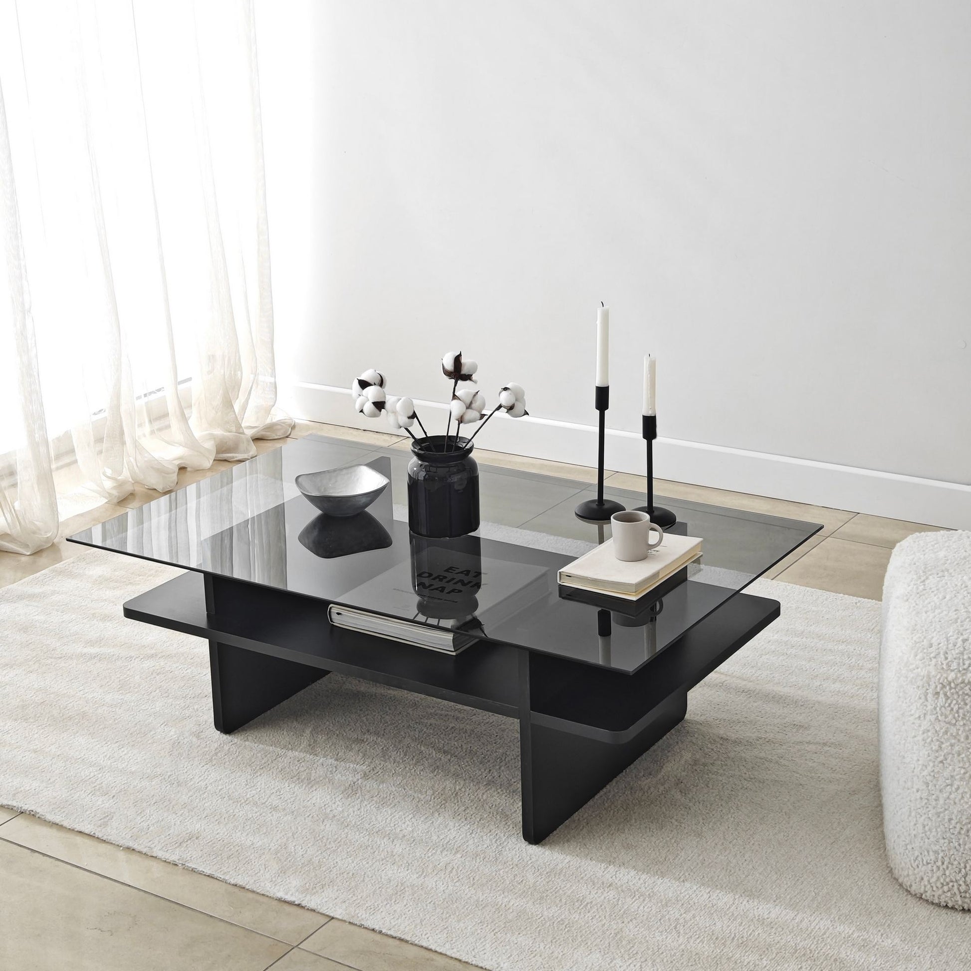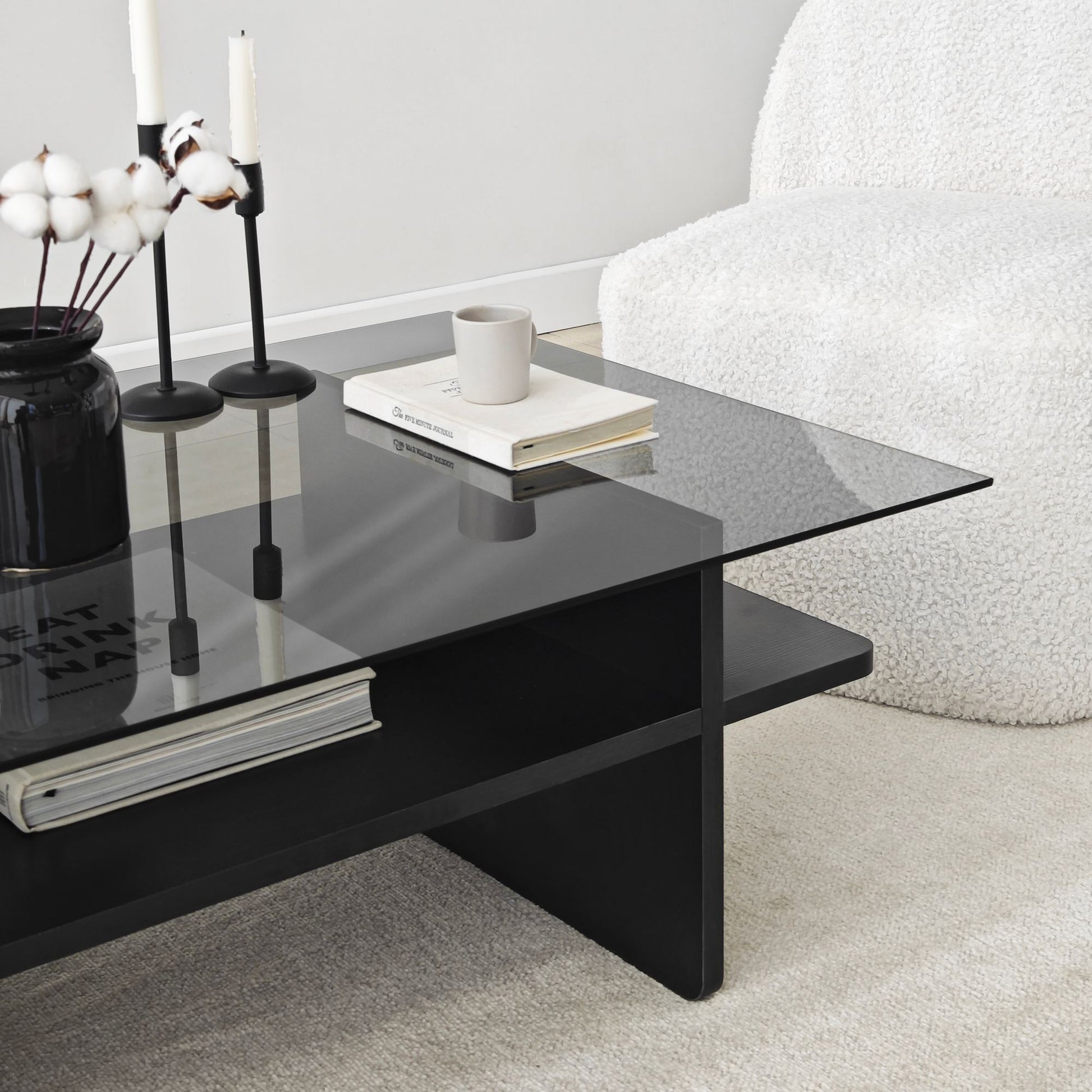 Diga adeus às mesas de centro aborrecidas e desactualizadas - a nossa mesa de centro em vidro é uma peça de afirmação que irá impressionar os seus convidados e tornar o seu espaço mais luxuoso. A combinação das cores preto e fumado cria um contraste impressionante que irá melhorar a estética de qualquer divisão.