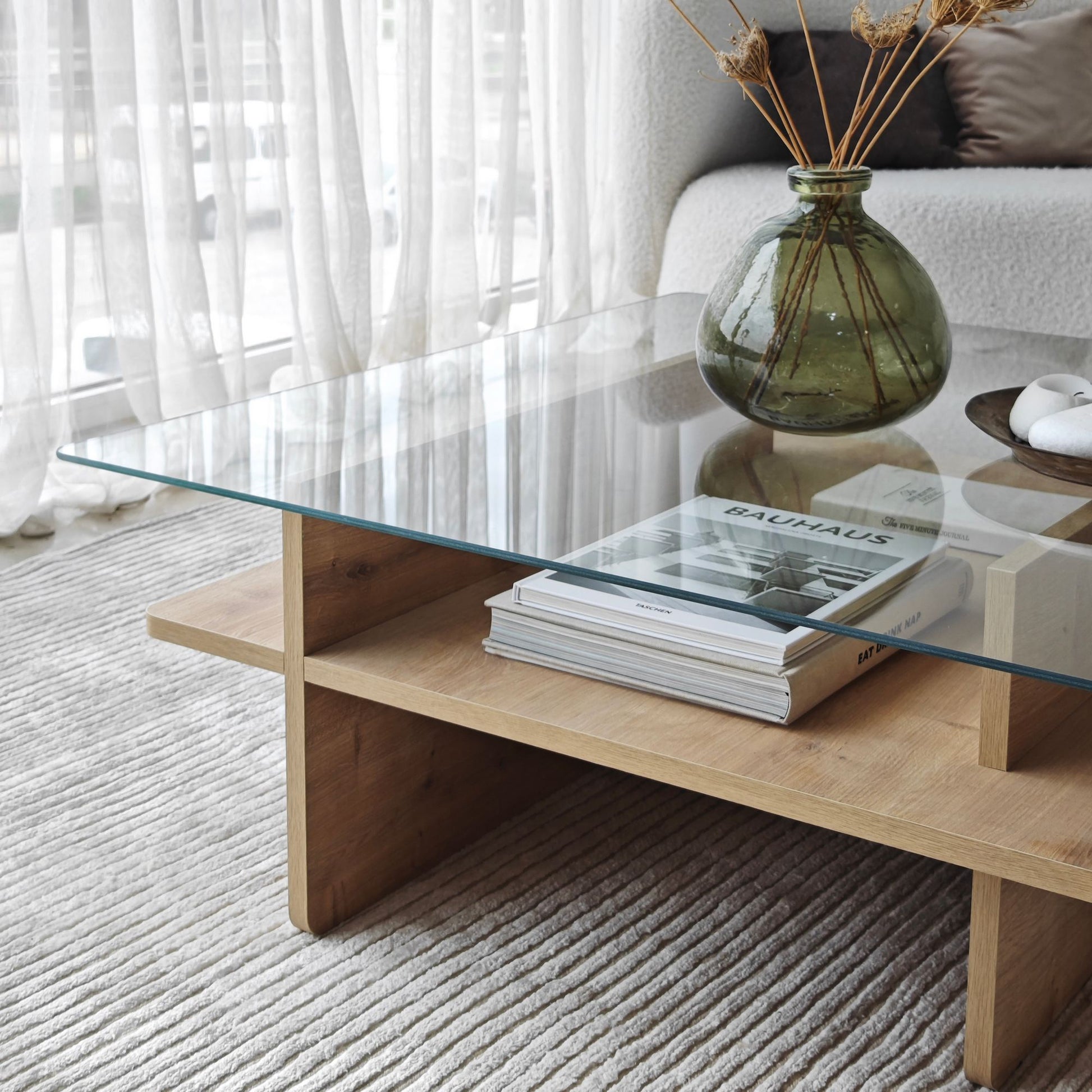 Fabricada com vidro 100% temperado e uma estrutura feita de painel de partículas 100% revestido a melamina, esta mesa de centro foi feita para durar. A espessura de 18 mm garante robustez e estabilidade, enquanto a borda em pvc confere um acabamento elegante ao design.