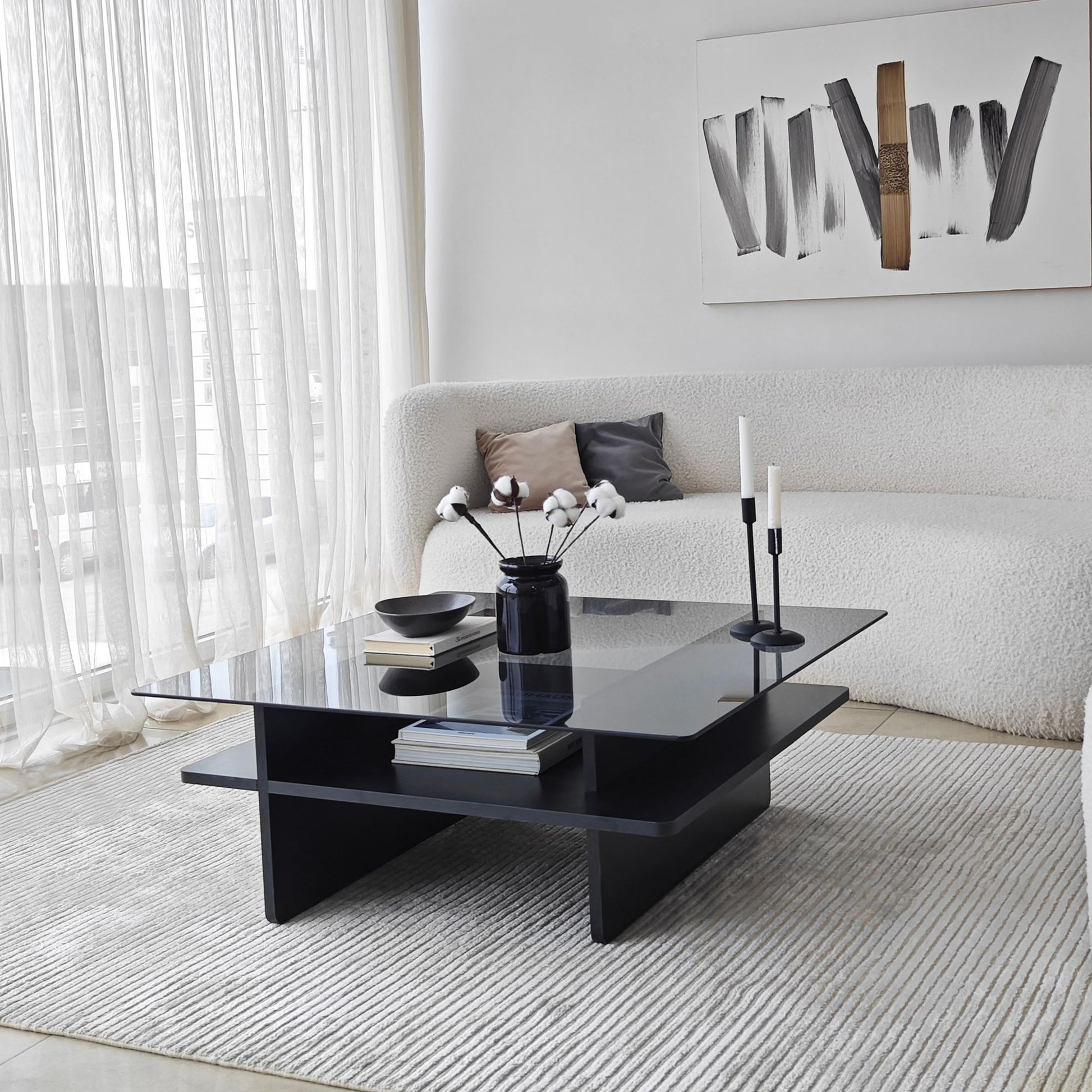 Mesa de Centro – 90cm x 35cm x 90cm – Preto e Fumaça – Vidro e Aglomerado
