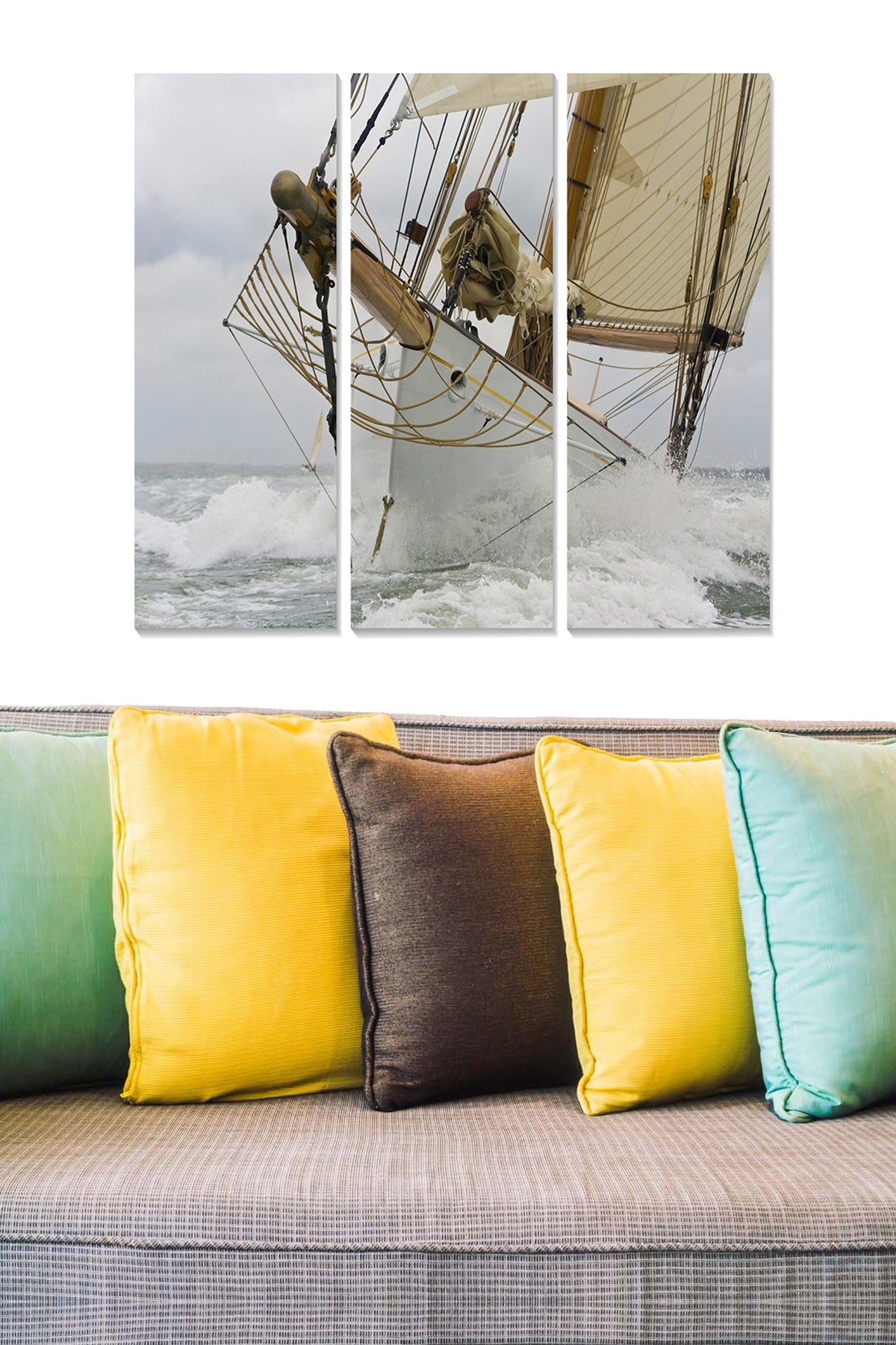 Renove instantaneamente a sua sala de estar, quarto ou escritório com esta obra de arte moderna. O formato tríptico cria profundidade e movimento, enquanto as cores vibrantes adicionam personalidade e estilo ao seu ambiente.
