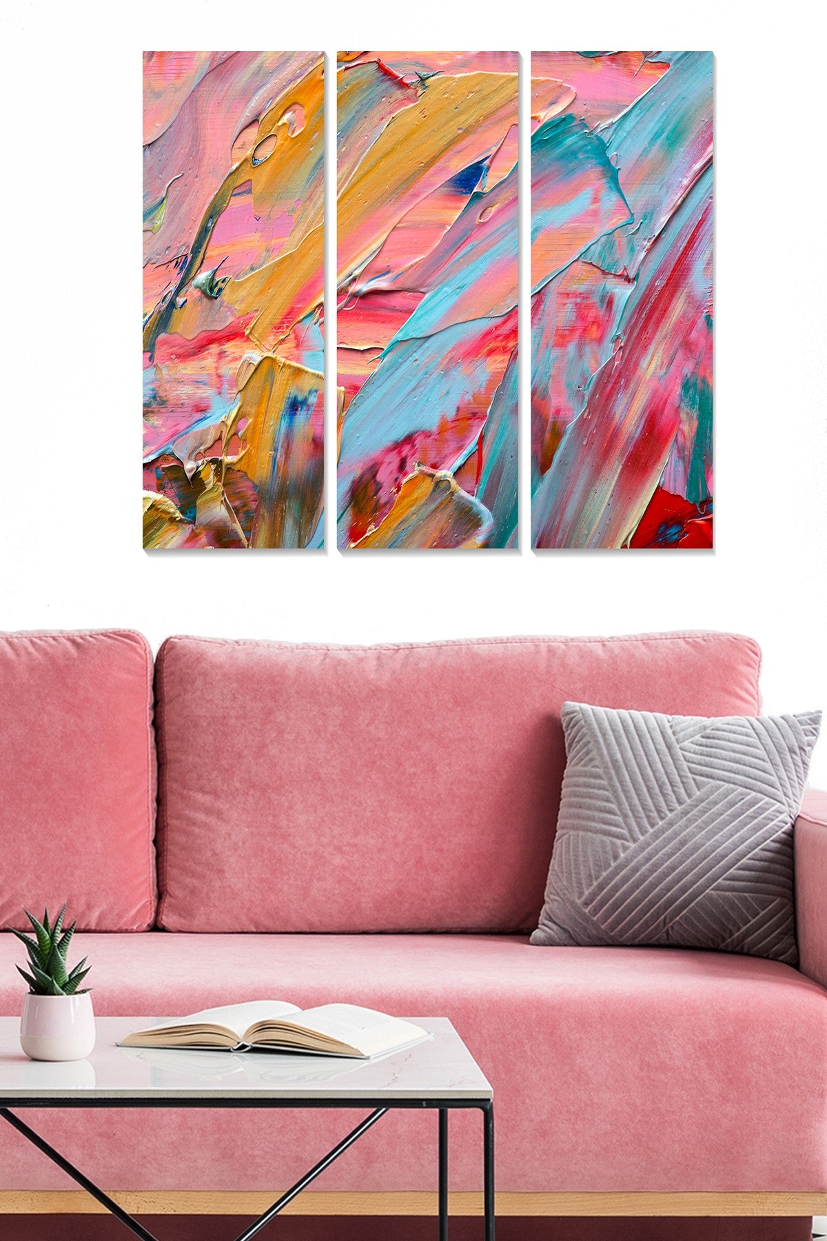 Sala de estar, quarto, escritório, hall de entrada ou qualquer espaço que necessite de um toque artístico especial. A composição em tríptico permite flexibilidade na disposição, adaptando-se perfeitamente ao seu estilo pessoal.