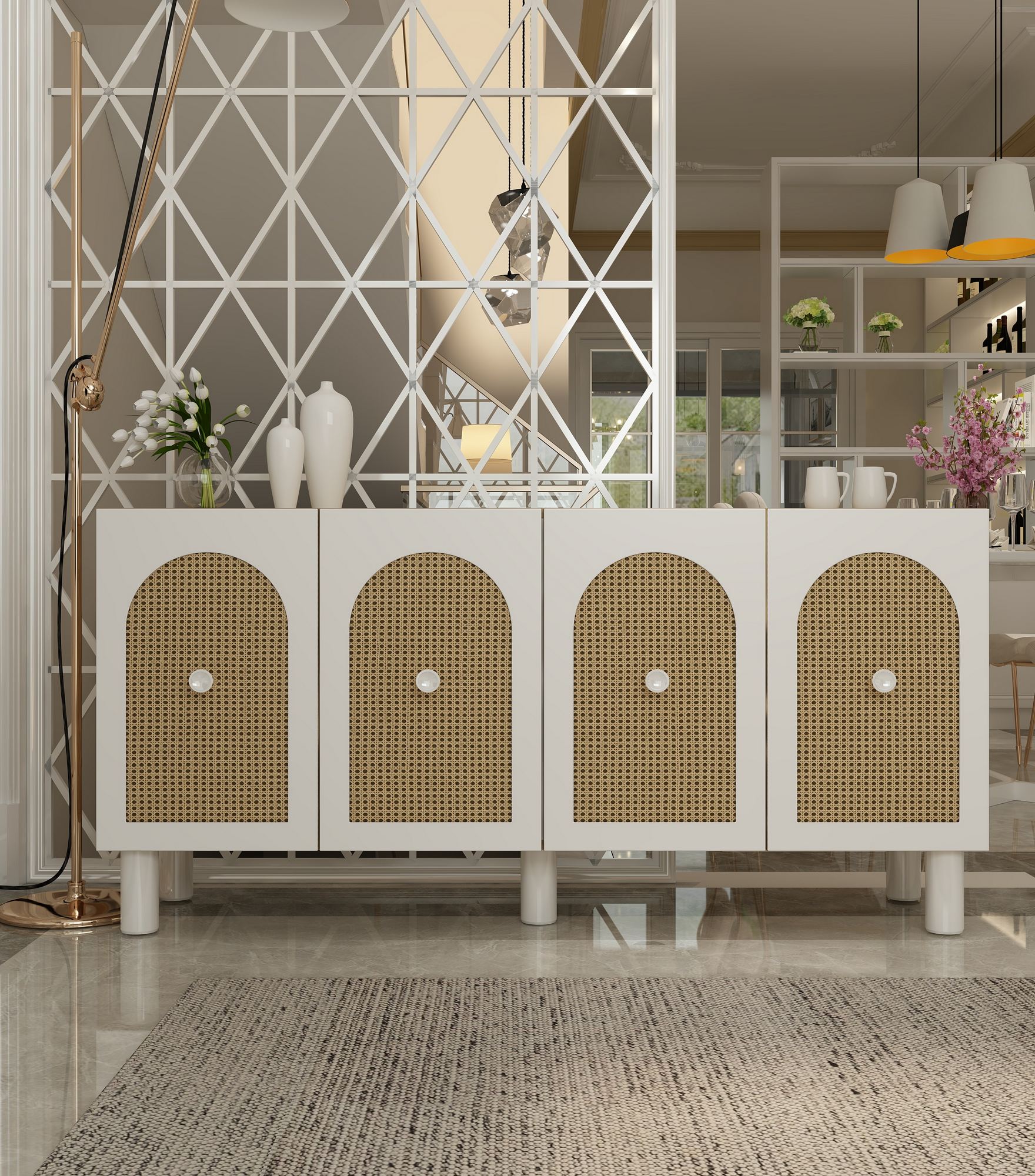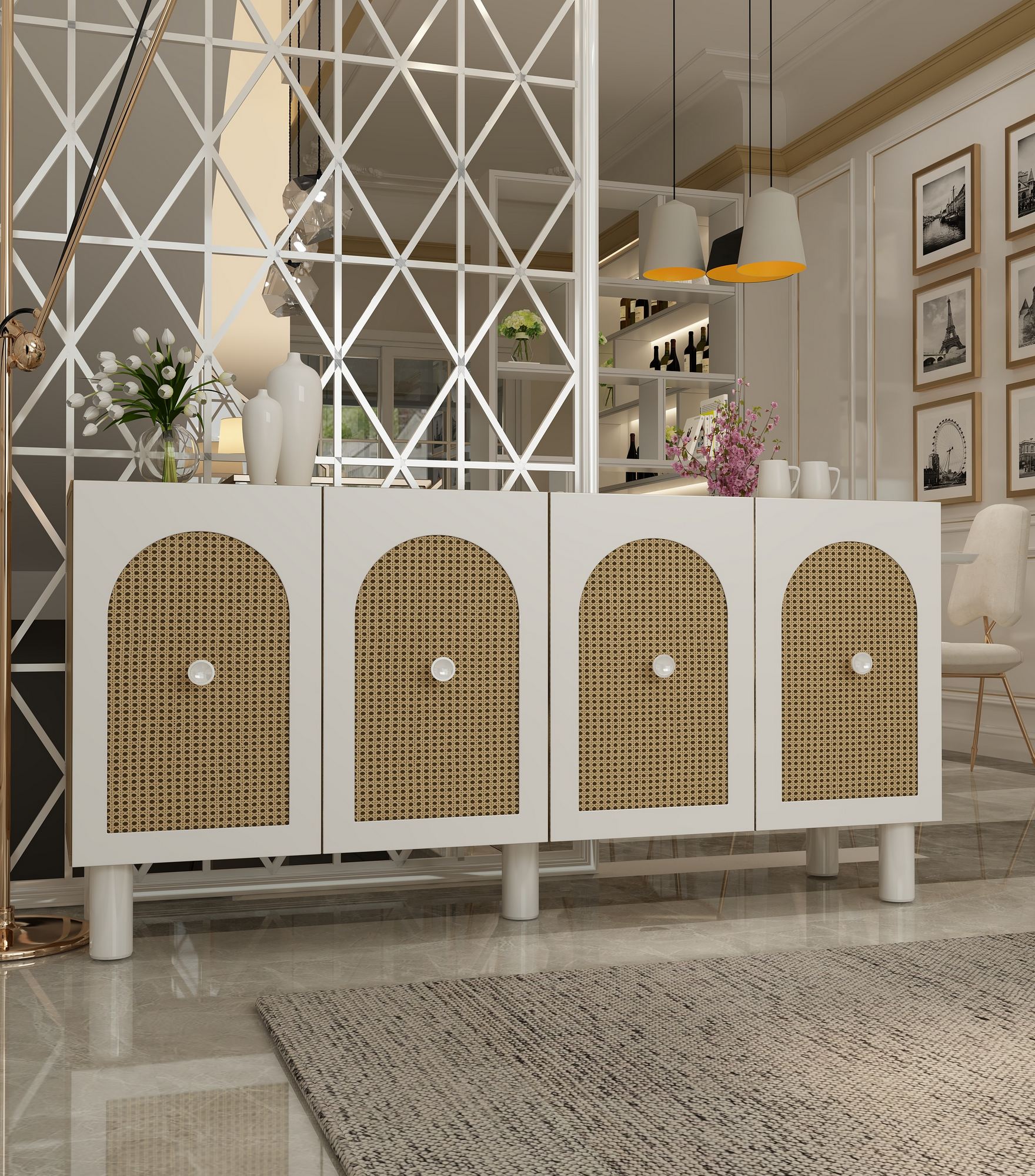 Adicione um toque de elegância ao seu lar com nosso console, que apresenta um design moderno que irá instantaneamente atualizar sua sala de estar ou hall de entrada. As prateleiras espaçosas oferecem amplo armazenamento para todos os seus itens essenciais, mantendo seu espaço organizado e livre de bagunça.