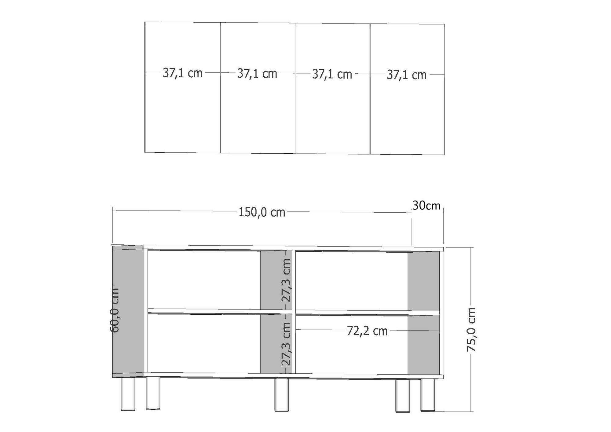 - Dimensões: 150 cm (L) x 75 cm (A) x 30 cm (P)