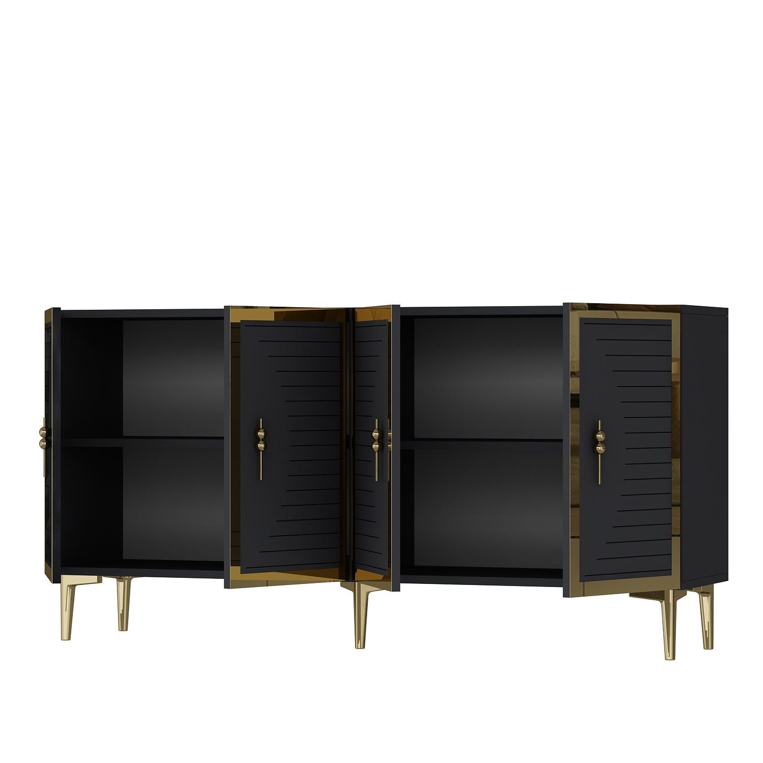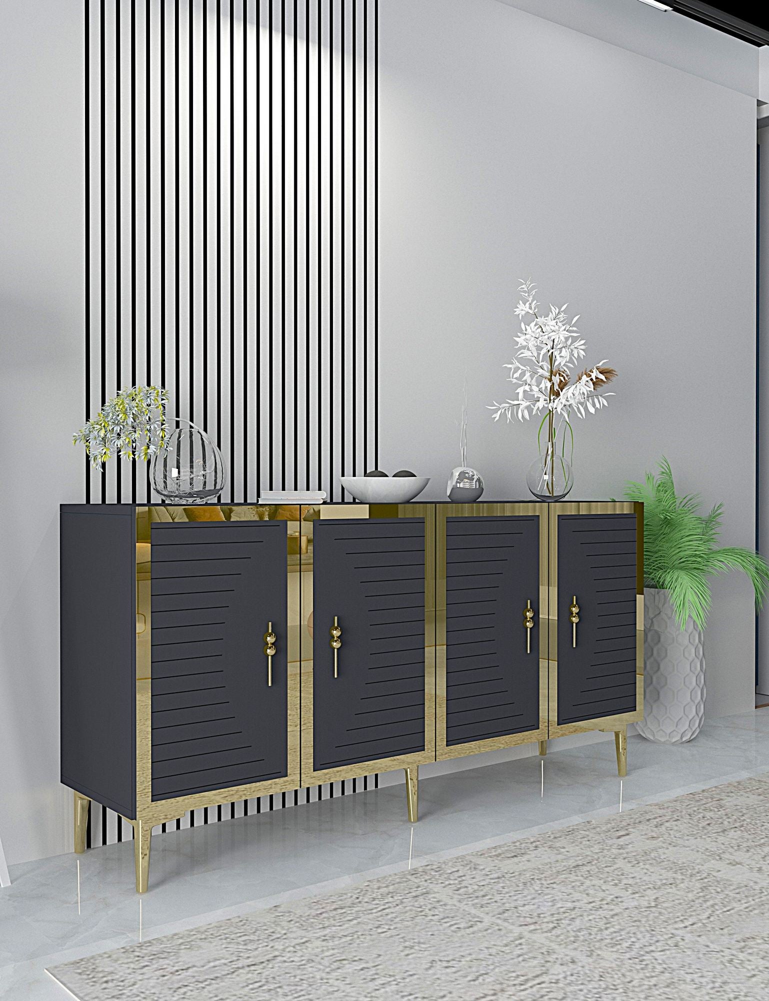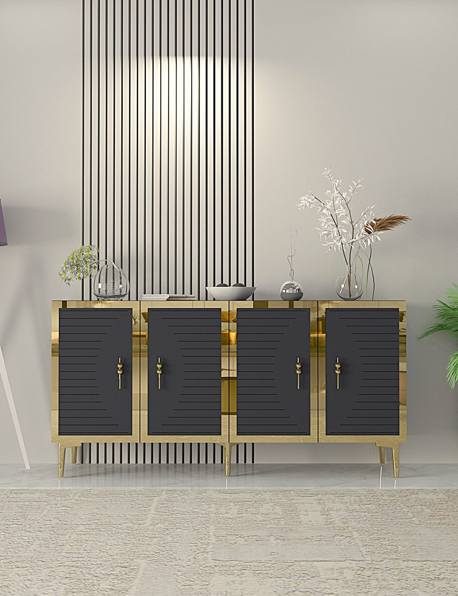 Aparador – 150cm x 75cm x 32cm – Antracite e Dourado – MDF