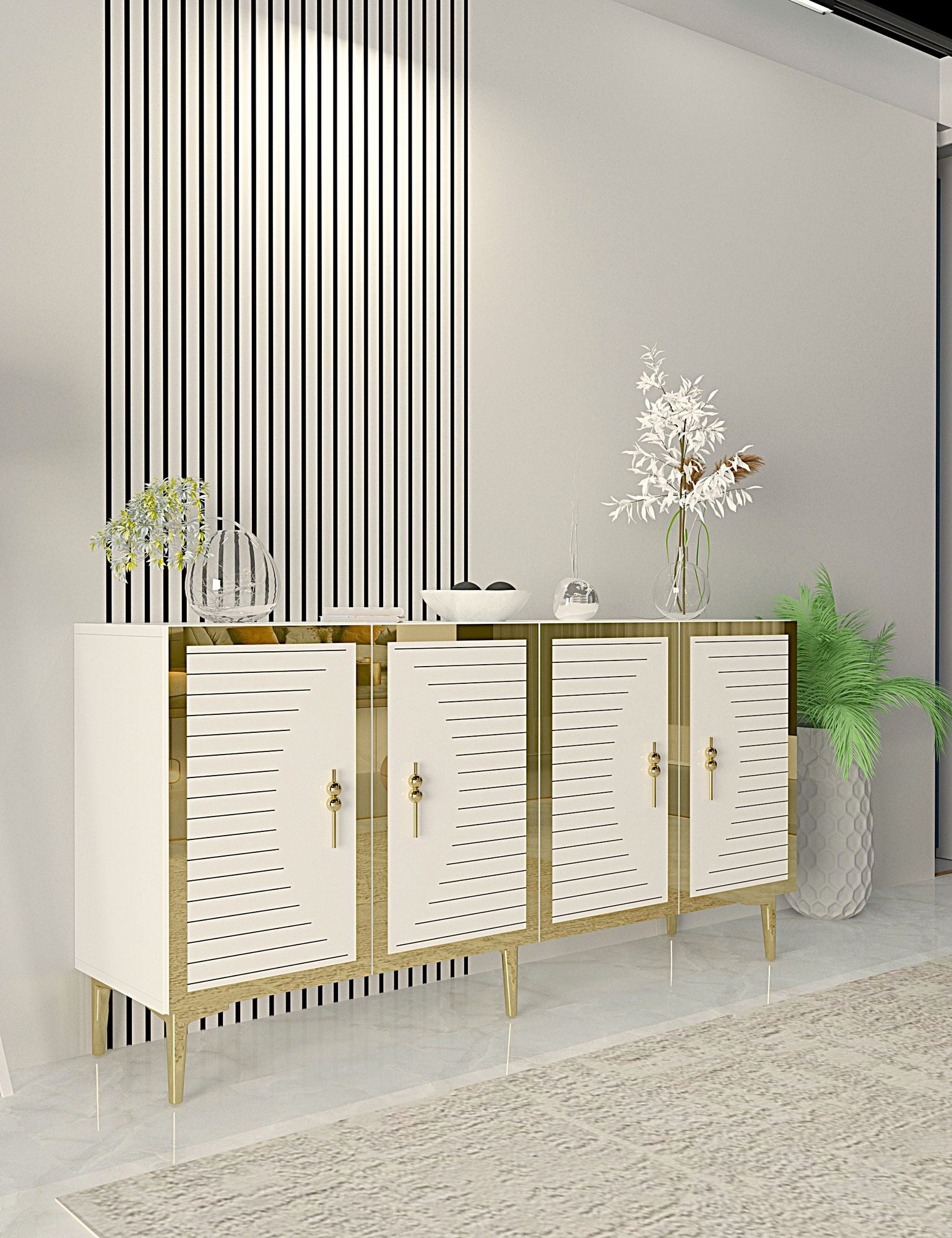 Não se contente com móveis comuns quando você pode ter o extraordinário. Adicione nosso Console Branco e Dourado à sua casa hoje e experimente a diferença que ele faz em seu espaço.