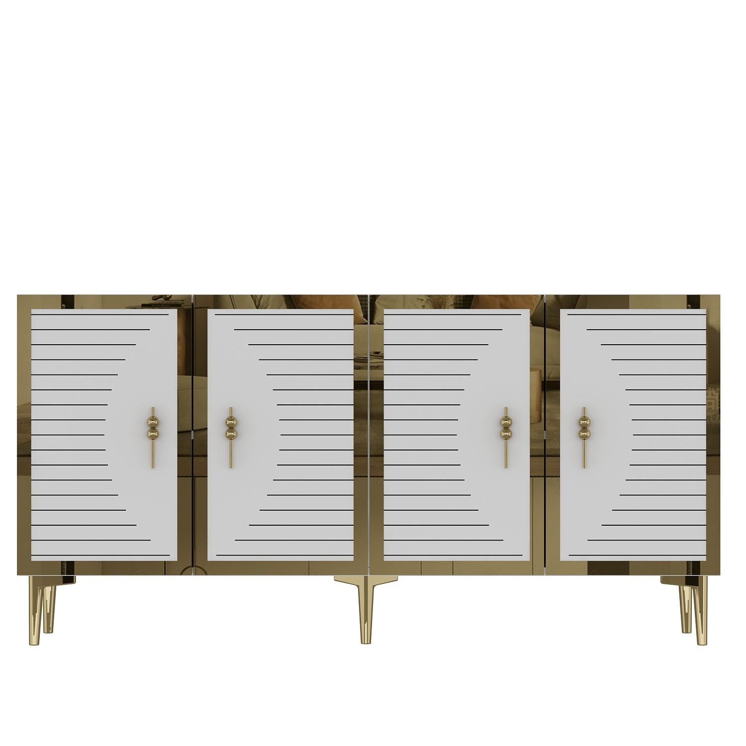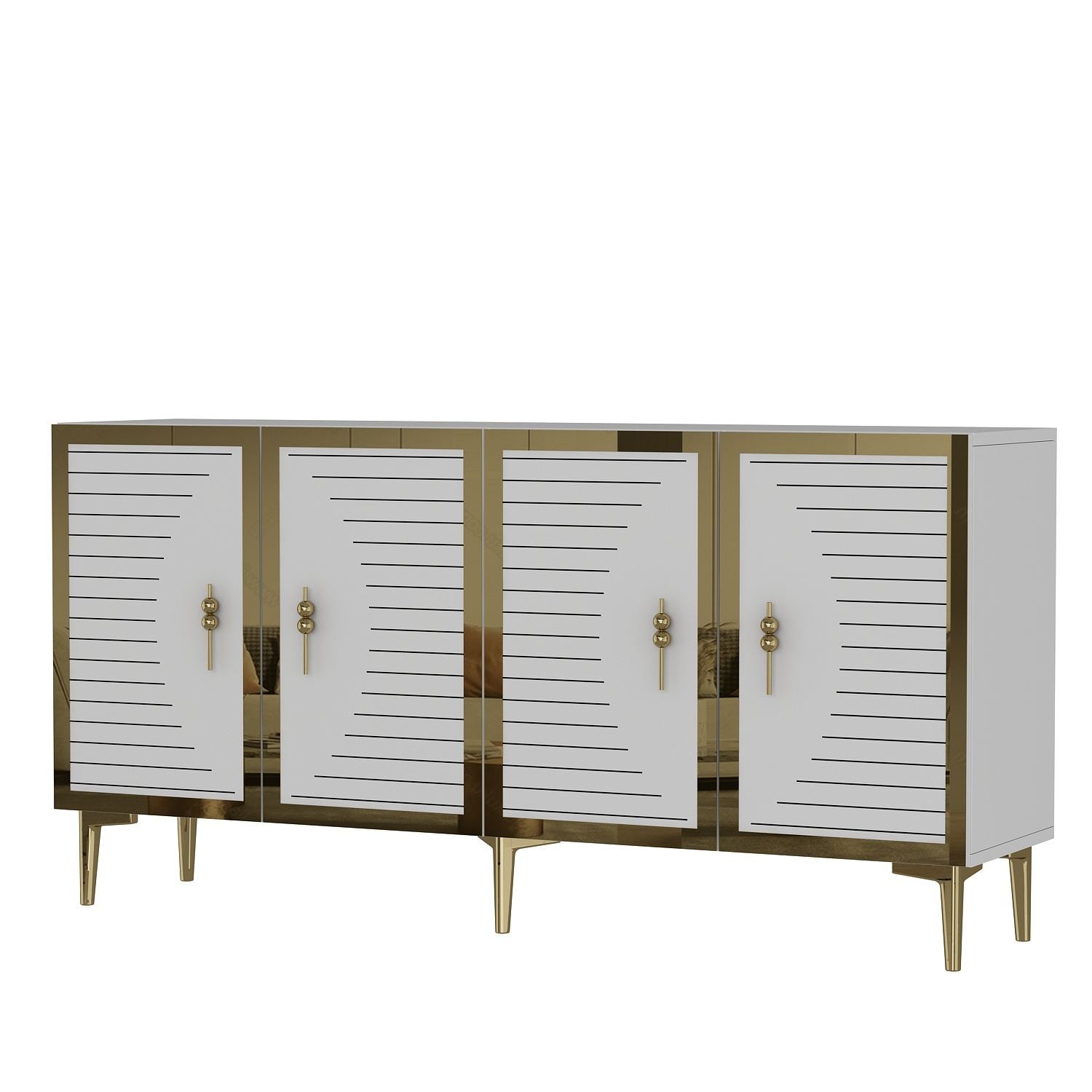 Aparador – 150cm x 75cm x 32cm – Branco e Dourado – MDF