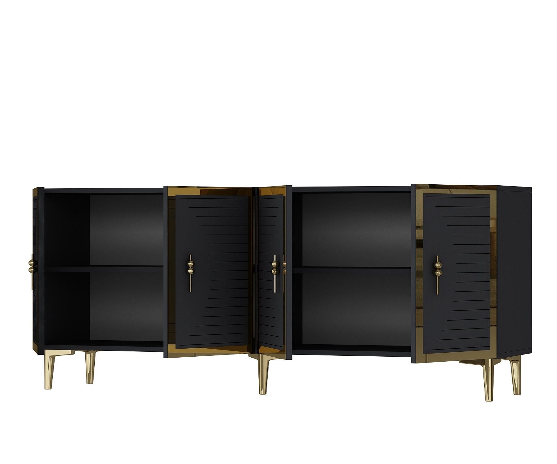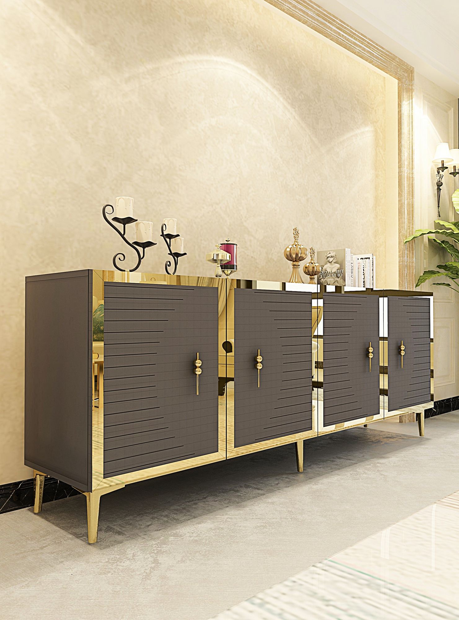 Aparador de aglomerado revestido de melamina – 180 cm x 75 cm x 32 cm – Antracite e Dourado
