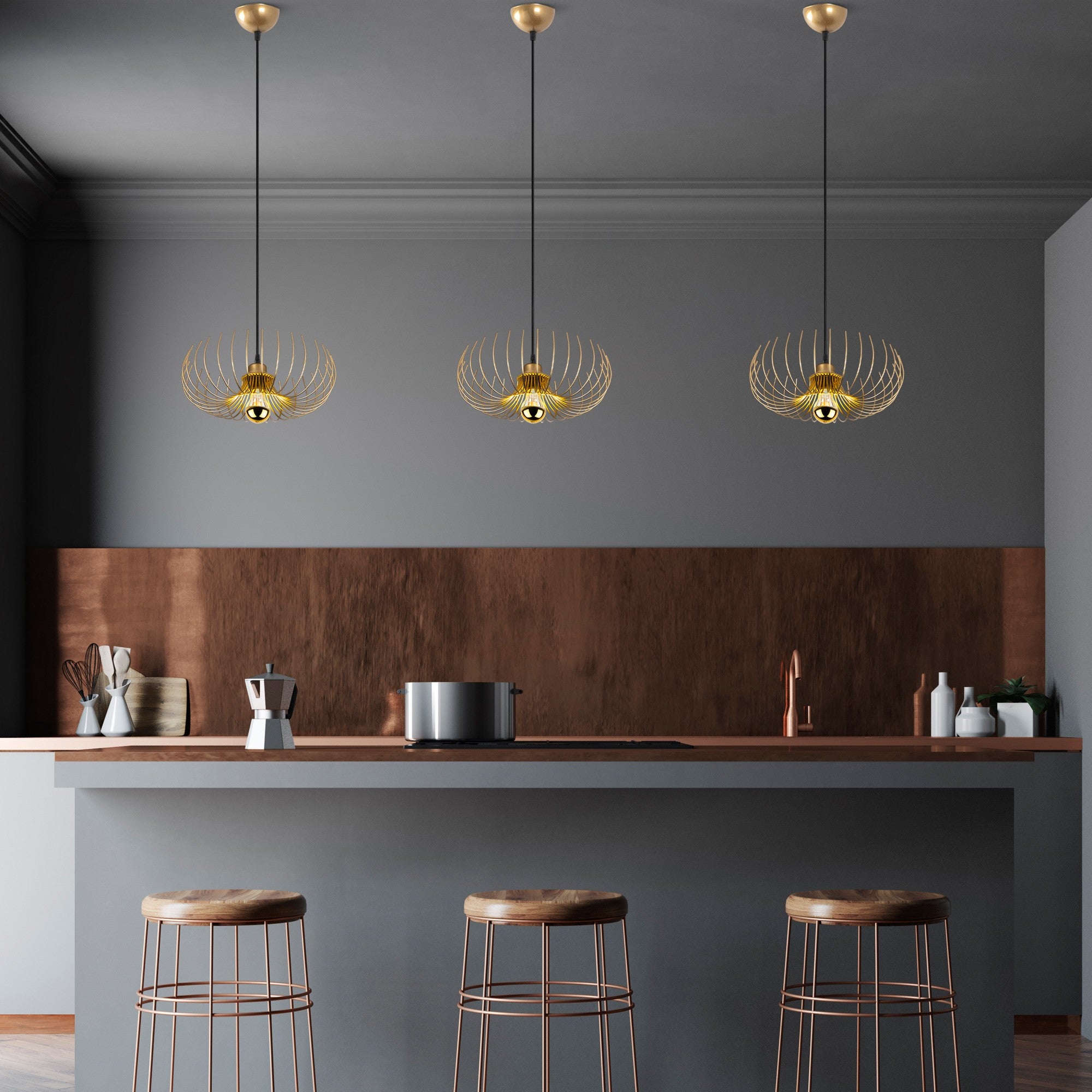 Eleve o seu espaço com o nosso candeeiro dourado e crie um ponto focal que impressionará todos os que entrarem em sua casa. O acabamento em ouro cintilante acrescenta um toque de glamour, enquanto a altura ajustável permite-lhe personalizar o aspeto para se adequar perfeitamente ao seu espaço. Quer o pendure na sala de jantar, na sala de estar ou no quarto, este candeeiro irá elevar instantaneamente o estilo da sua casa.