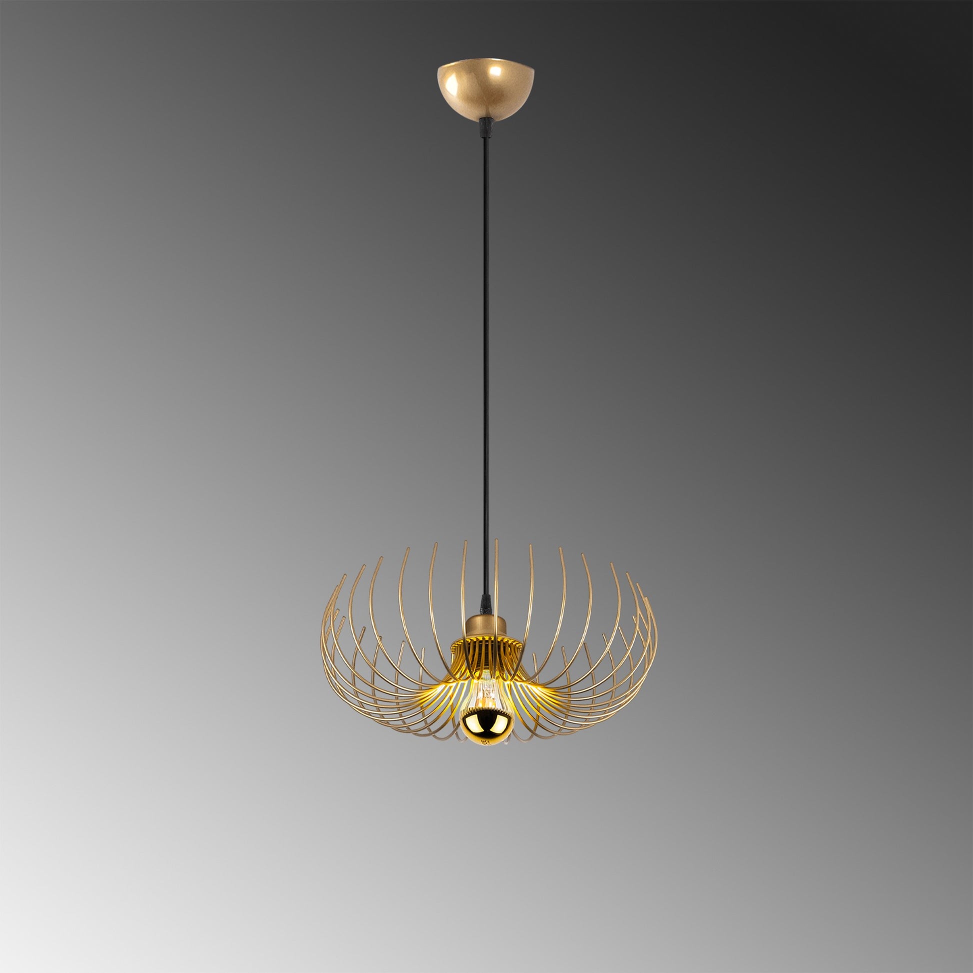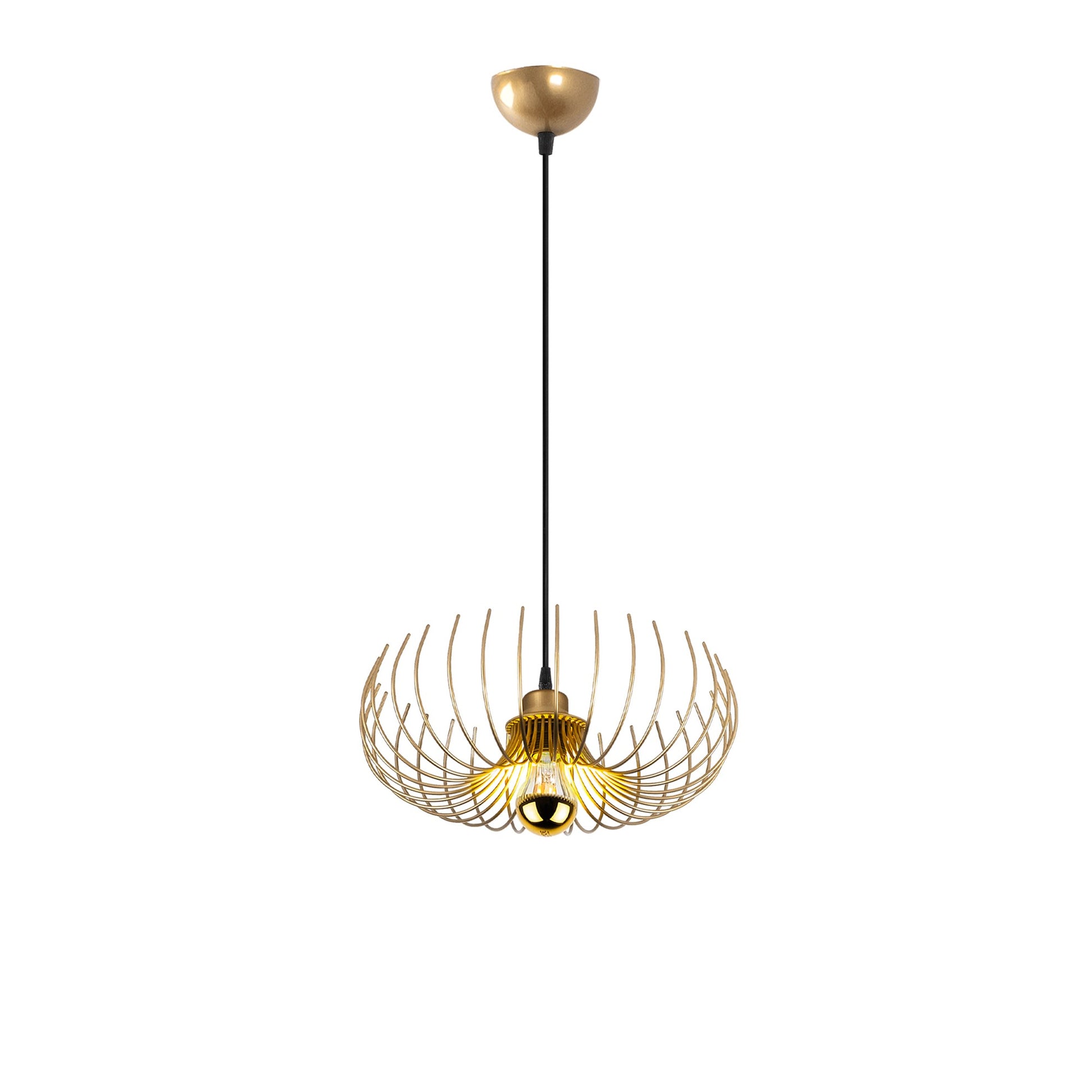 Transforme o seu espaço de vida com o nosso deslumbrante candeeiro dourado. Esta peça requintada dará um toque de elegância e luxo a qualquer divisão, criando uma atmosfera calorosa e convidativa que você e os seus convidados irão adorar. O corpo metálico intrincado é muito bem trabalhado, tornando-o numa verdadeira peça de afirmação que irá realçar a estética da sua casa.