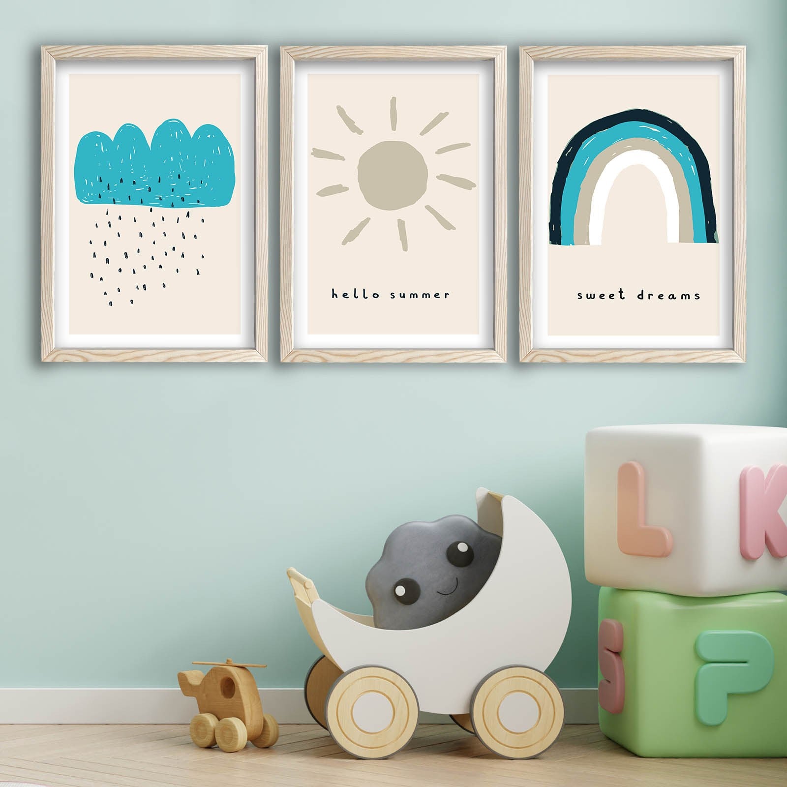 Conjunto de 3 Quadros Decorativos MDF com Moldura - Tons de Azul 53x118cm