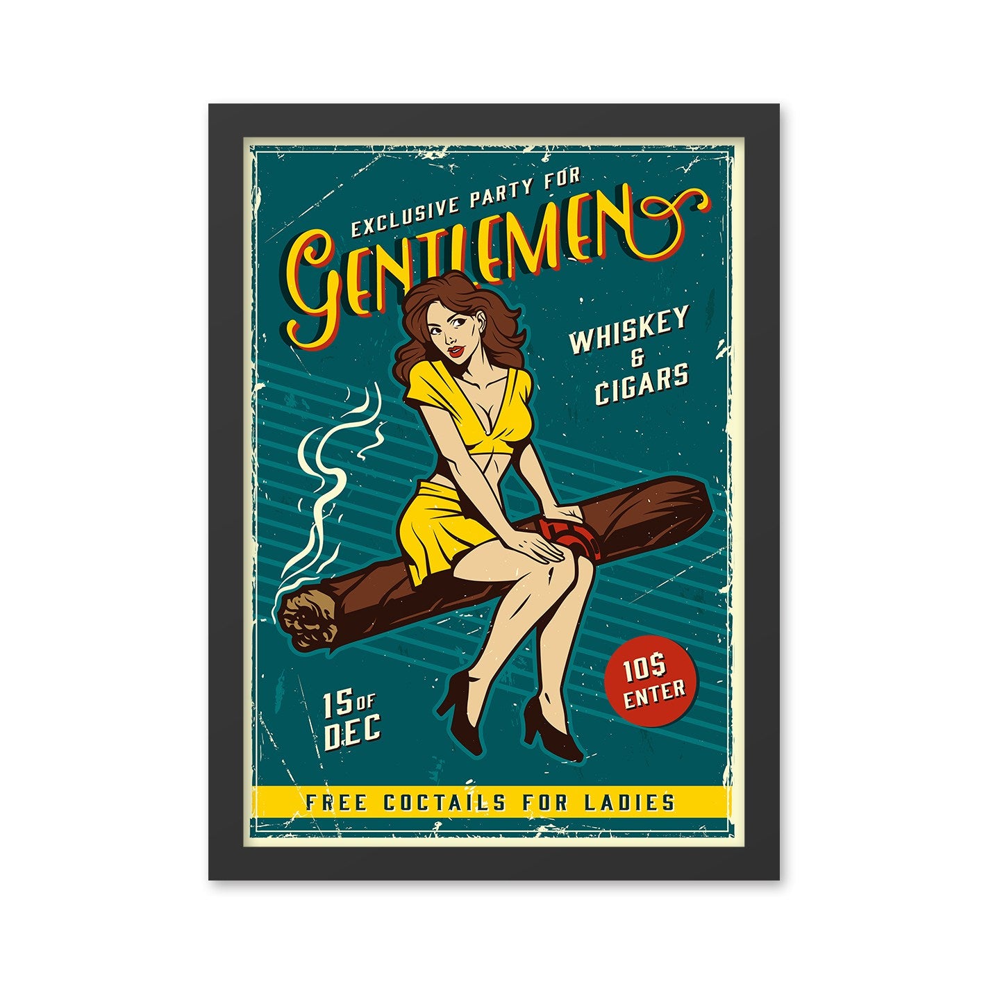 Quadro Decorativo em MDF com Moldura “Whiskey & Cigars” 55 x 75 cm, Multicolor, Impressão Digital UV