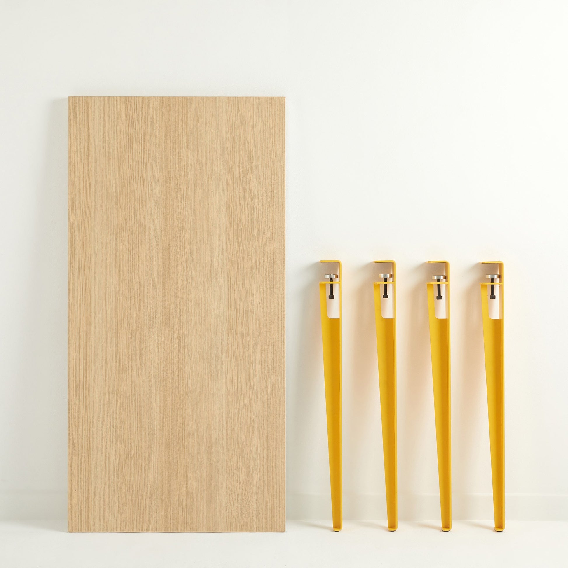 - Cor Vibrante: Acabamento em madeira amarela que adiciona energia e personalidade ao seu espaço