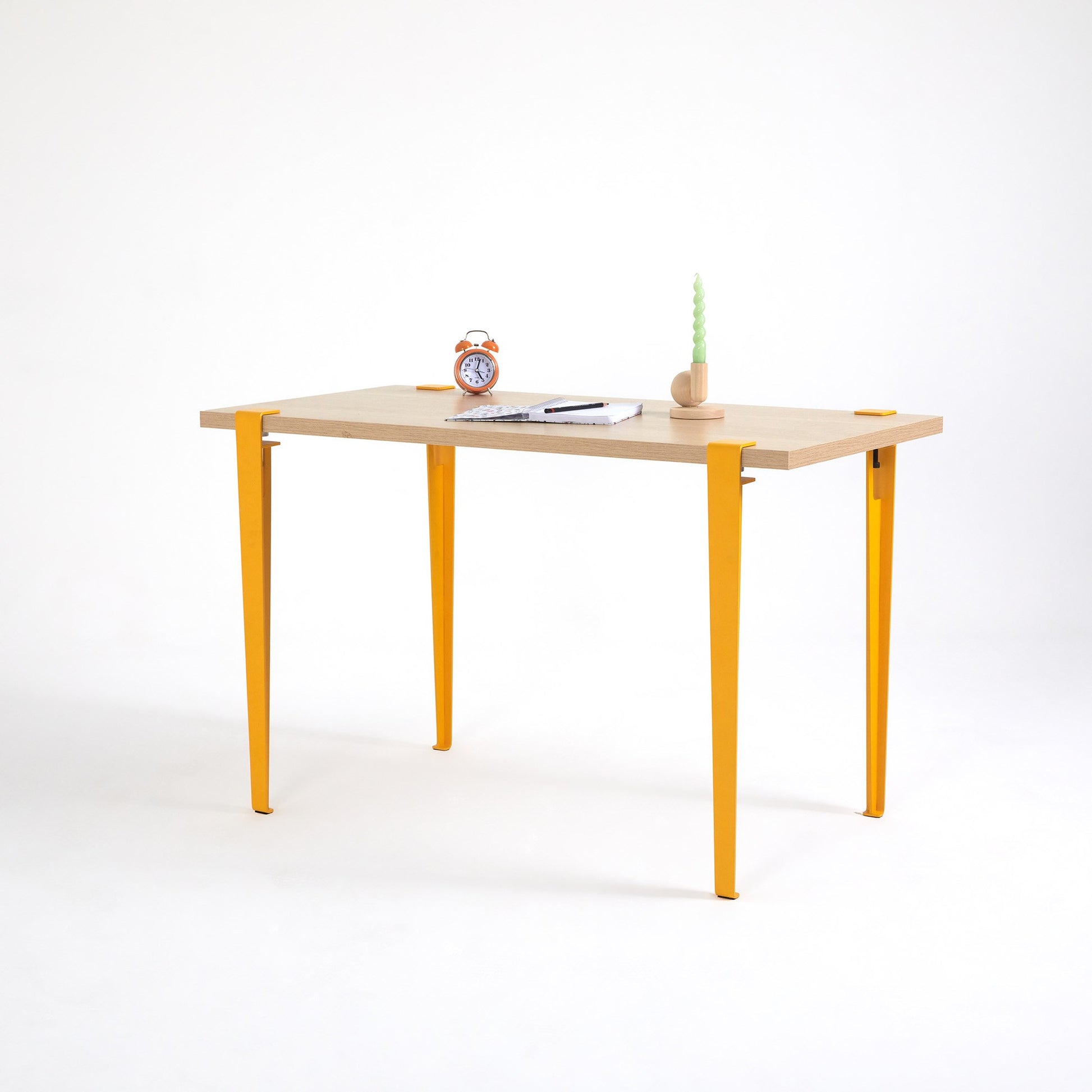 Secretária de Estudo em Madeira Amarela - 120cm com 4 Pernas de Aço e Montagem Rápida para 4 Pessoas
