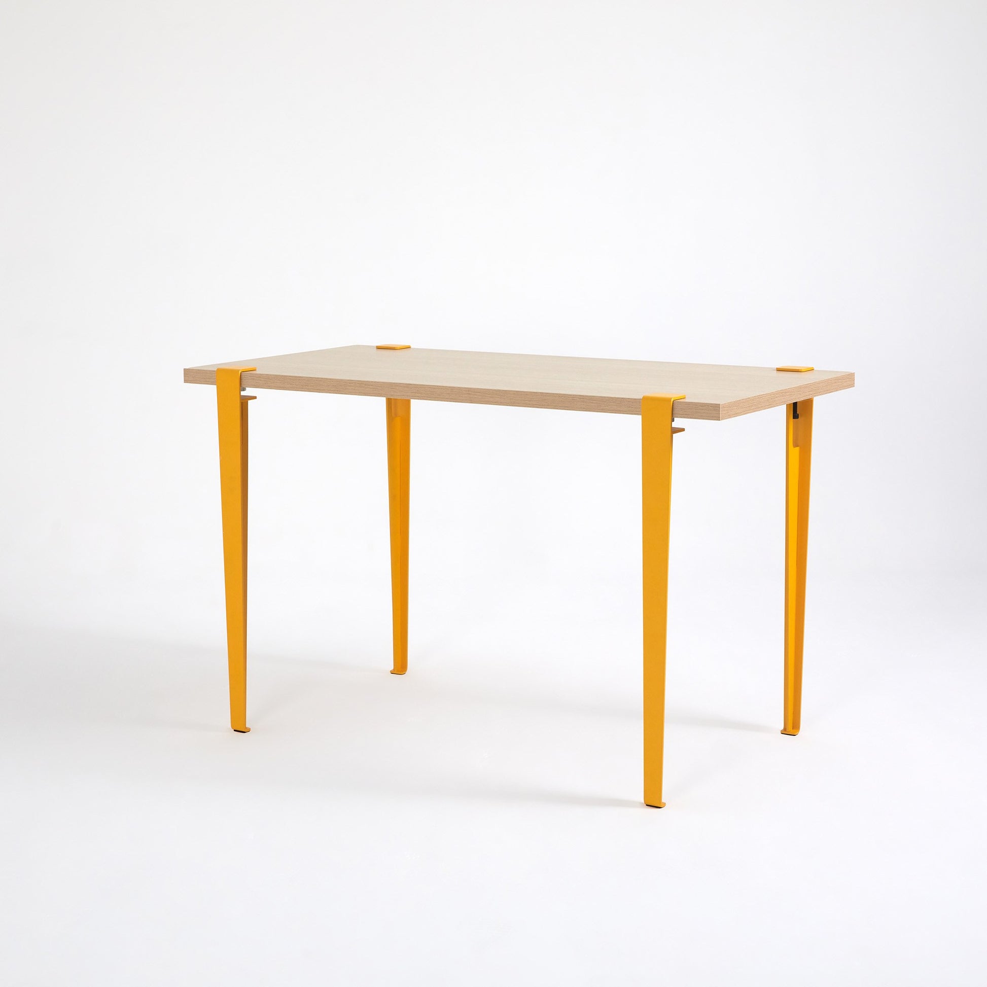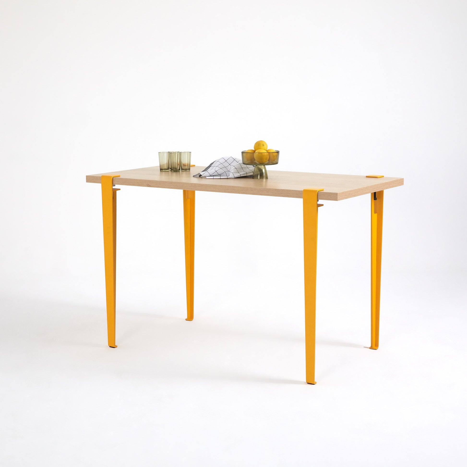Mesa de Jantar Amarela em Madeira - 4 Lugares com Pernas de Aço e Montagem Rápida